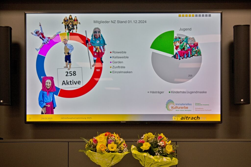 Für die Narrenzunft berichtete Vorstand Christian Zimmermann über das Geschehen in der Fasnet: Insgesamt 258 Aktive hat man. Zu schaffen machen der Abteilung einmal mehr die hohen Kosten für Bus, „Ofanudla“, Konfetti, Häs und sonstigen Nebenkosten, auch sinkt die Motivation einzelner Mitgliedern. Als besonders belastend erwies sich einmal mehr der Aufwand für die Sicherheitskonzepte, von den versprochenen Lockerungen sei nichts passiert, im Gegenteil: Es seien die schriftlichen Anträge und Auflagen erhöht worden.