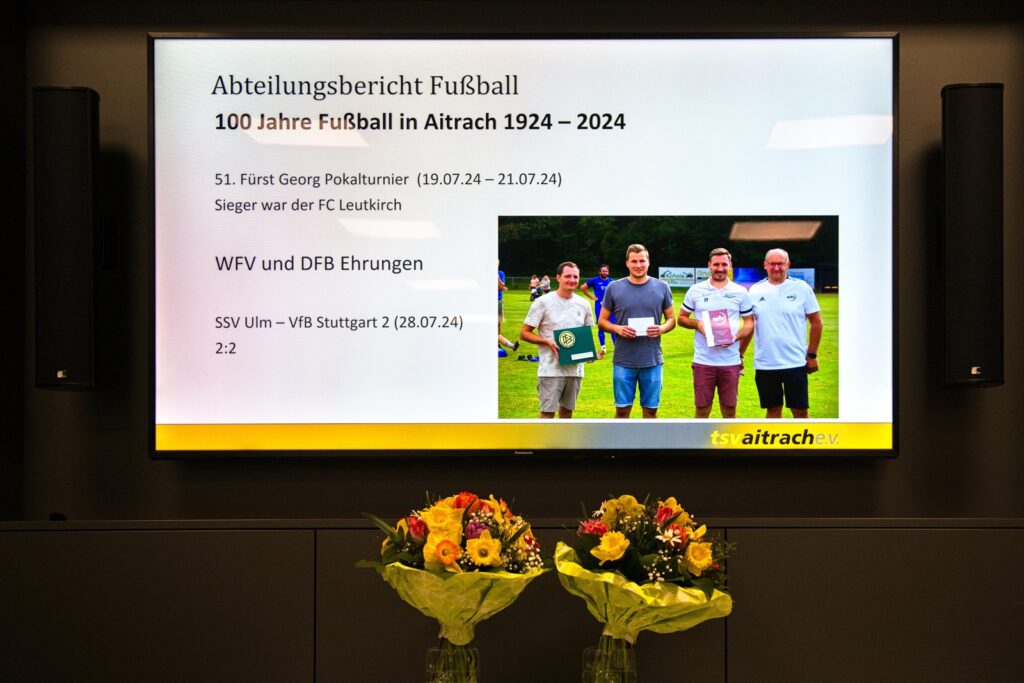 Beim Fußball gab Abteilungsleiter Florian Frey einen Rückblick auf 100 Jahre Fußball in Aitrach mit den zwei Großereignissen: Fürst-Georg-Turnier und der Fußball-Leckerbissen SSV Ulm gegen VFB Stuttgart II.