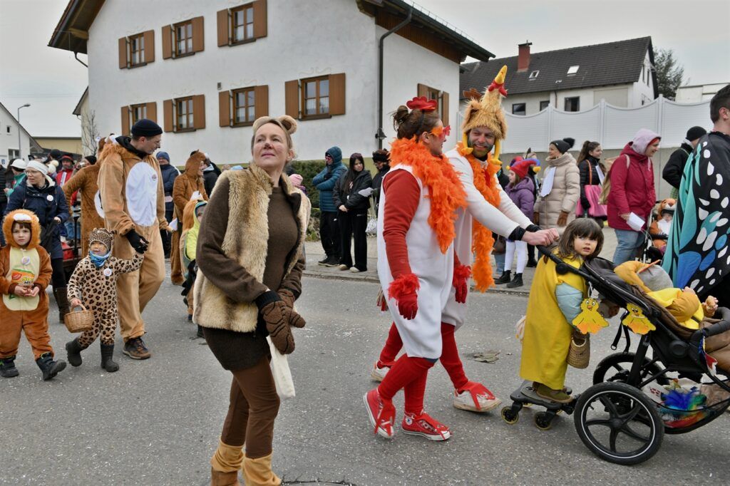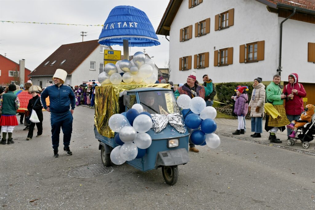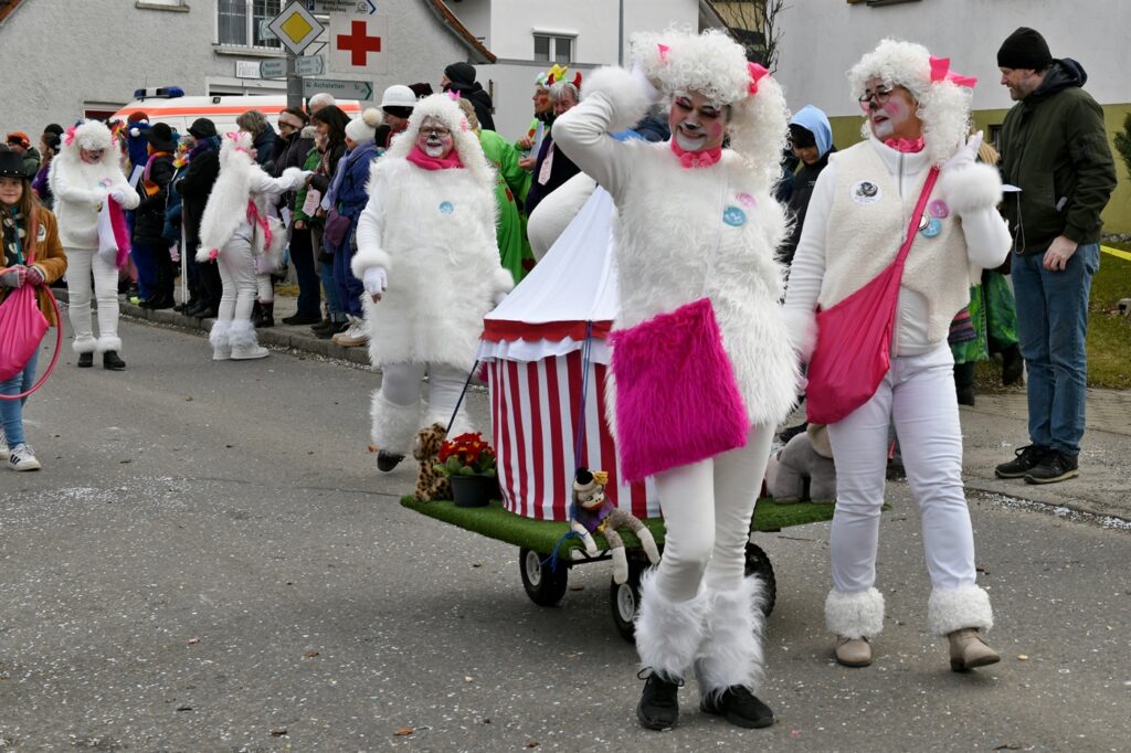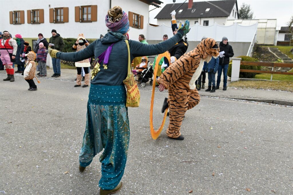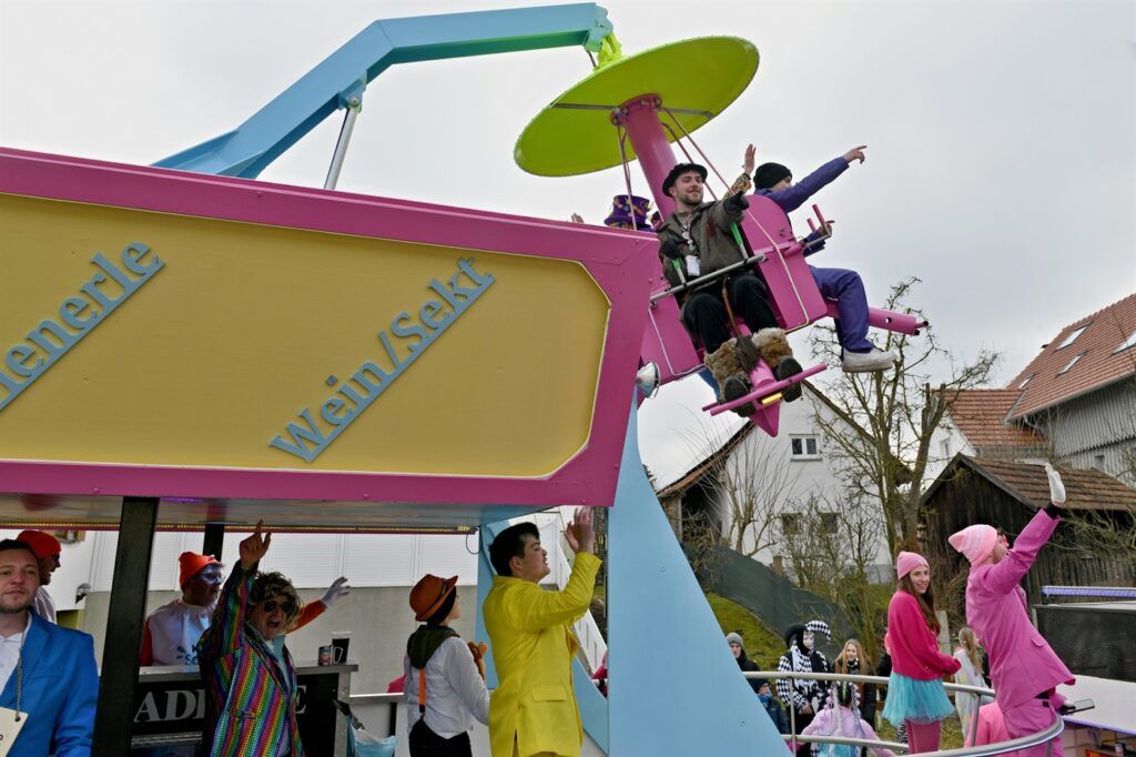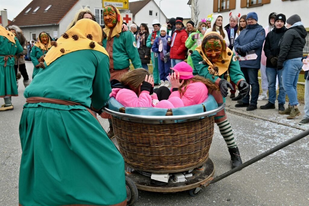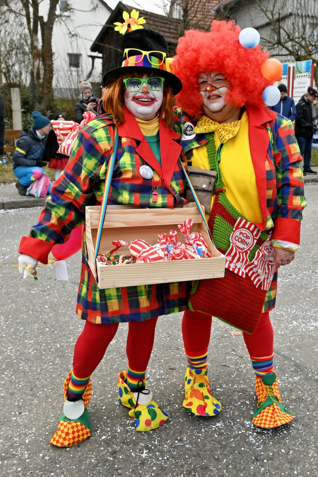 Höhepunkte und absolute Hingucker beim Aitracher Gaudiwurm waren die heimischen Fußgruppen und Wagenbauer, welche die Zirkuswelt, aber auch aktuelle politische Themen der Gegenwart in Stadt und Land bunt und fantasievoll präsentieren. Die Musikkapelle der Teilgemeinde Treherz führte den Zug an, gefolgt von den Aitracher Narrenzunftgruppen Roi- und Kellaweible, den Prinzenpaaren Florentine und Andreas und Laura und Jakob sowie den Gardemädchen.