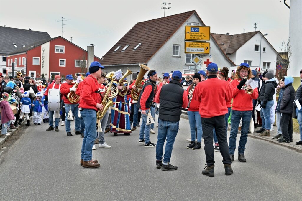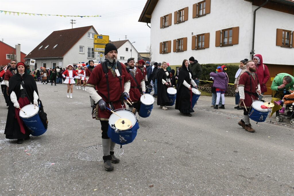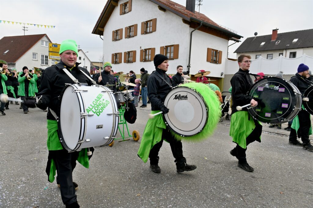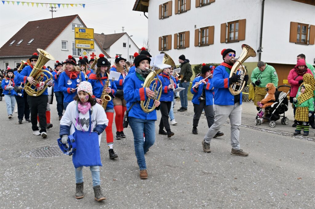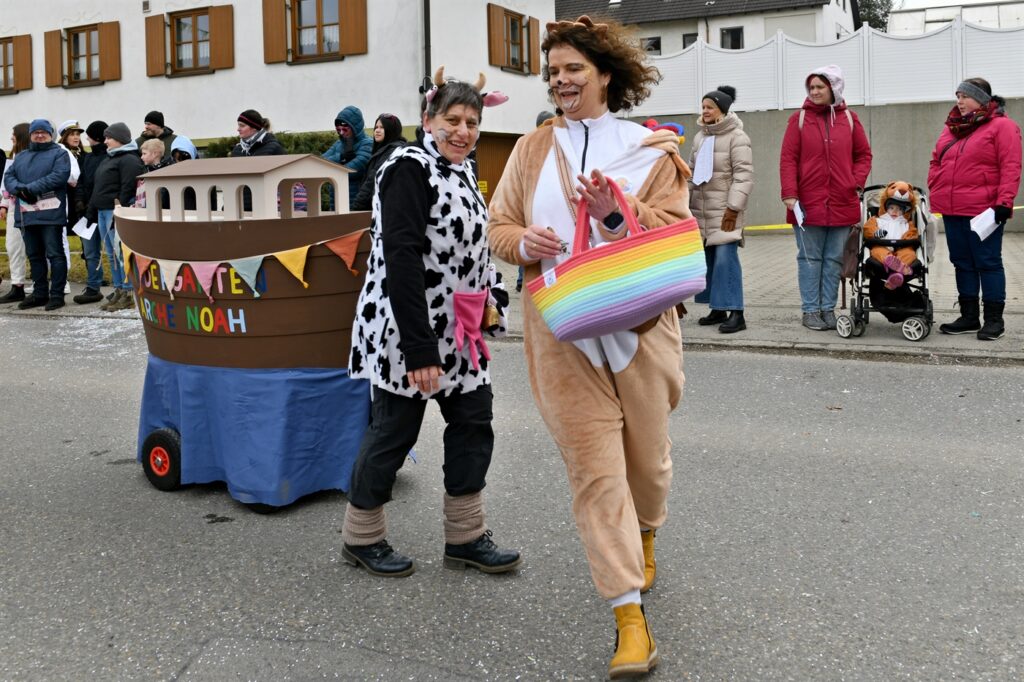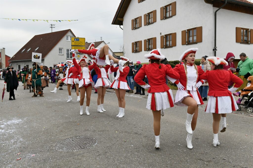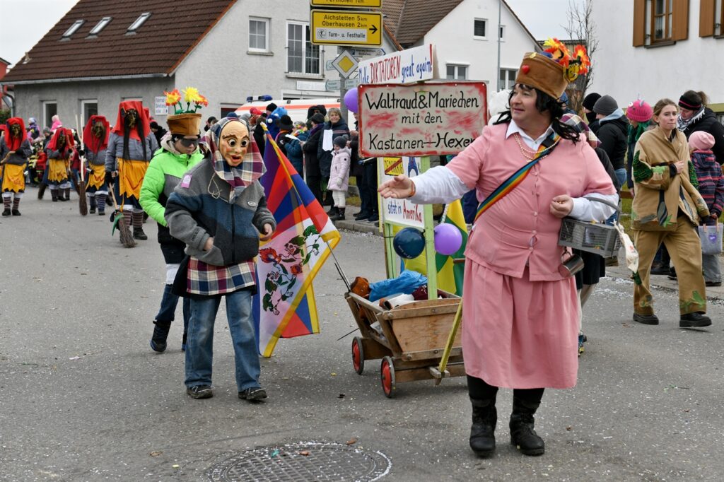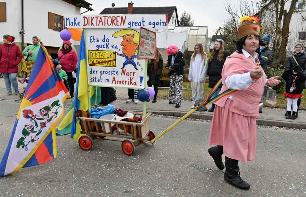 Höhepunkte und absolute Hingucker beim Aitracher Gaudiwurm waren die heimischen Fußgruppen und Wagenbauer, welche die Zirkuswelt, aber auch aktuelle politische Themen der Gegenwart in Stadt und Land bunt und fantasievoll präsentieren. Die Musikkapelle der Teilgemeinde Treherz führte den Zug an, gefolgt von den Aitracher Narrenzunftgruppen Roi- und Kellaweible, den Prinzenpaaren Florentine und Andreas und Laura und Jakob sowie den Gardemädchen.