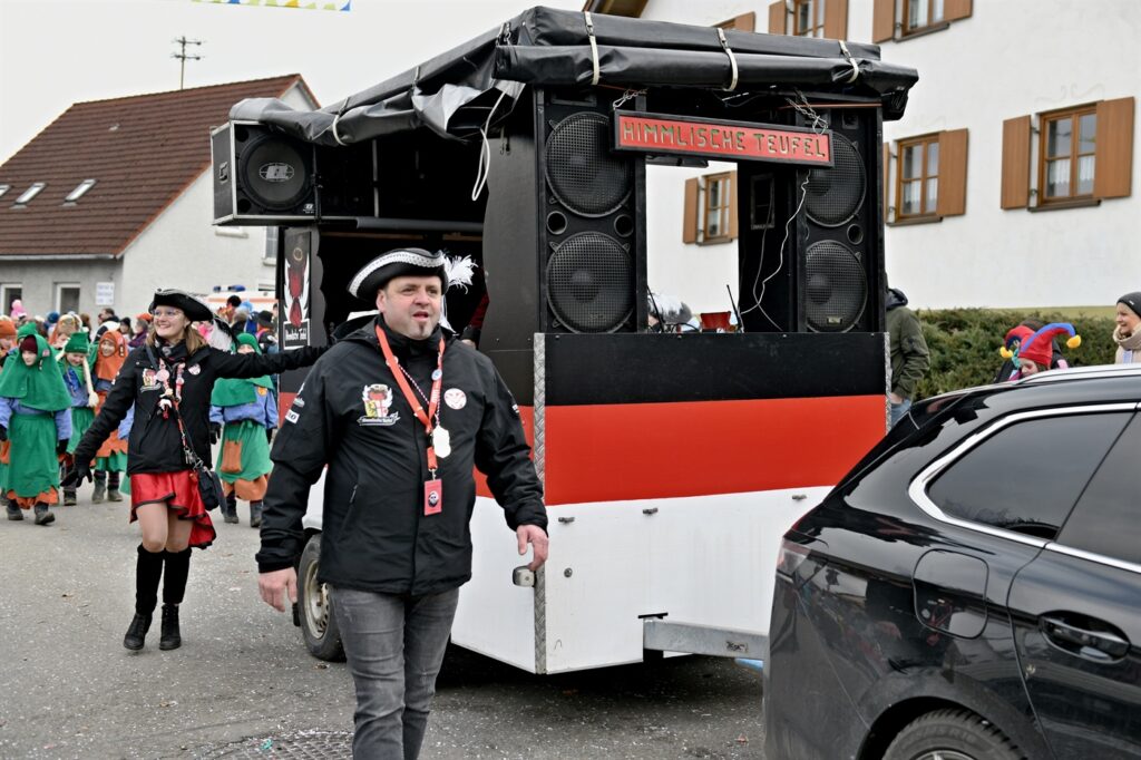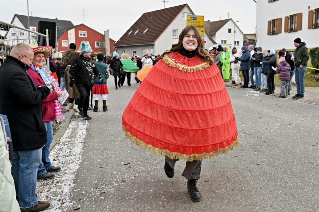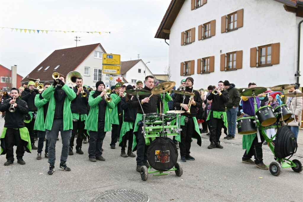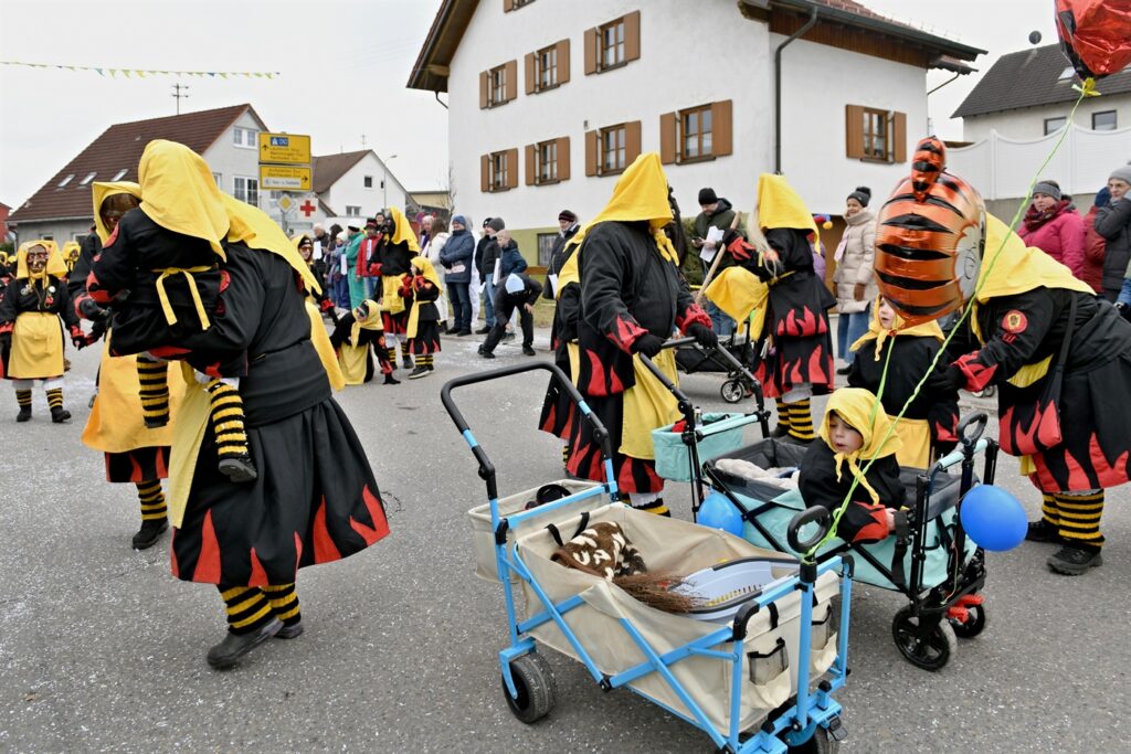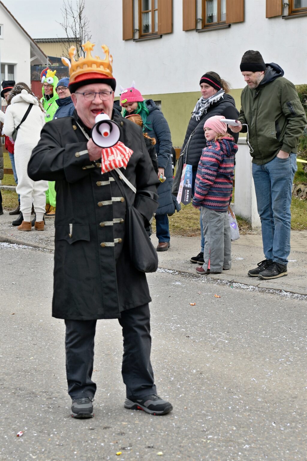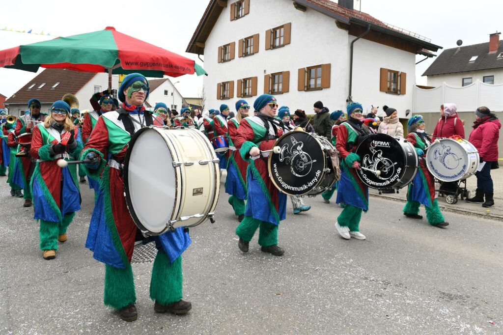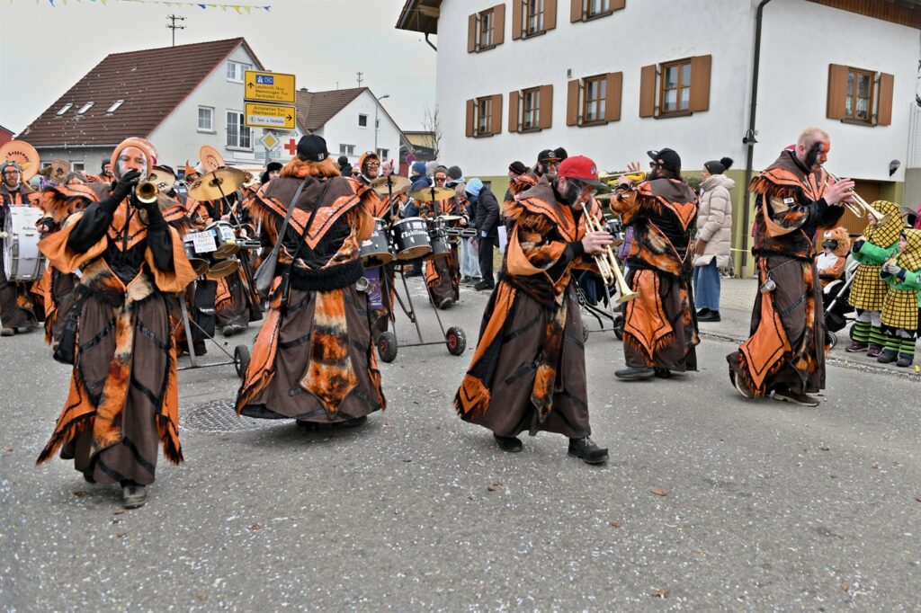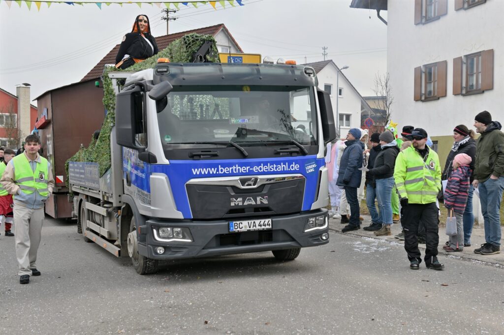 Höhepunkte und absolute Hingucker beim Aitracher Gaudiwurm waren die heimischen Fußgruppen und Wagenbauer, welche die Zirkuswelt, aber auch aktuelle politische Themen der Gegenwart in Stadt und Land bunt und fantasievoll präsentieren. Die Musikkapelle der Teilgemeinde Treherz führte den Zug an, gefolgt von den Aitracher Narrenzunftgruppen Roi- und Kellaweible, den Prinzenpaaren Florentine und Andreas und Laura und Jakob sowie den Gardemädchen.
