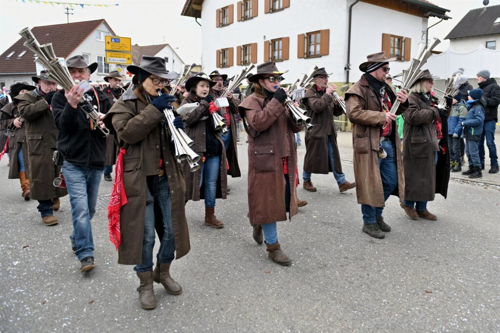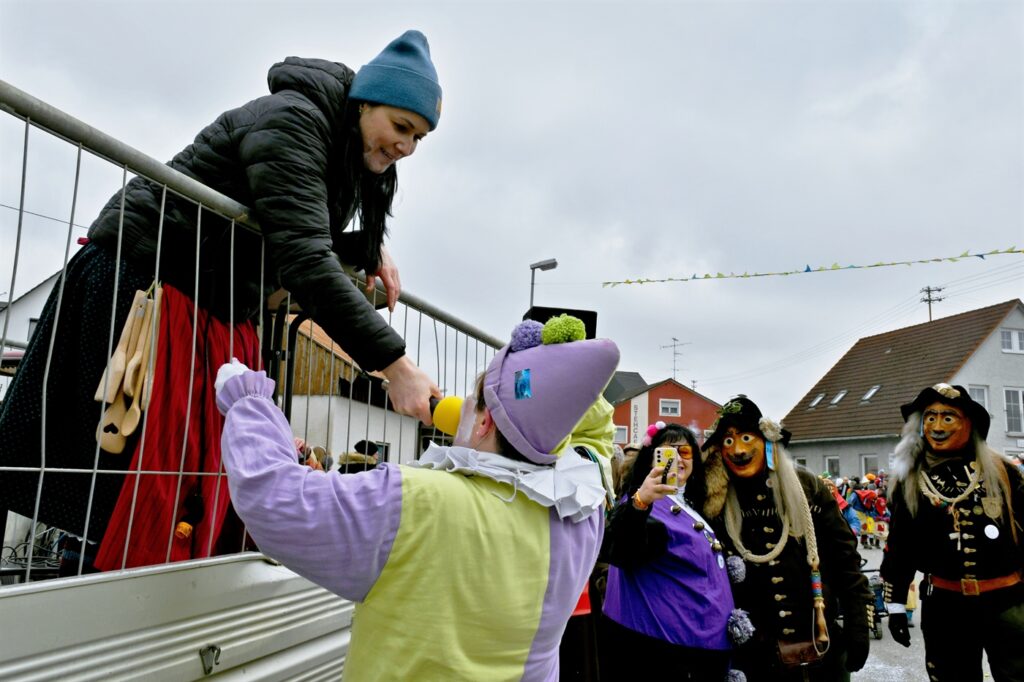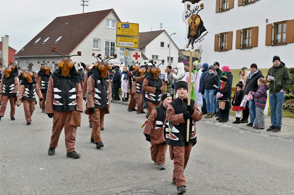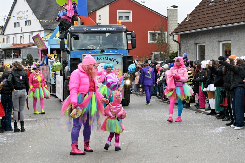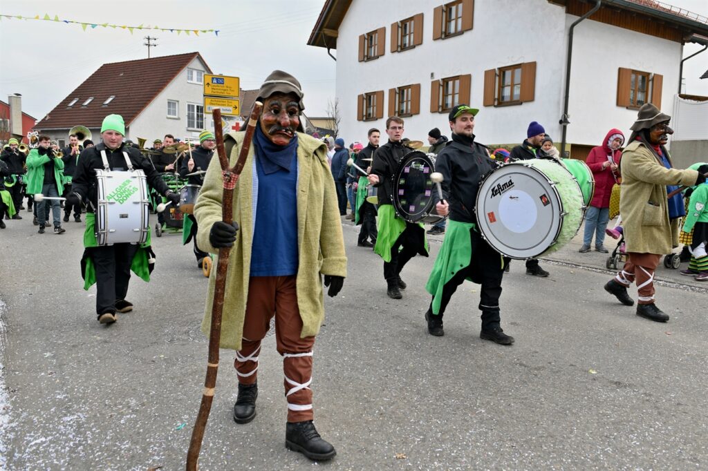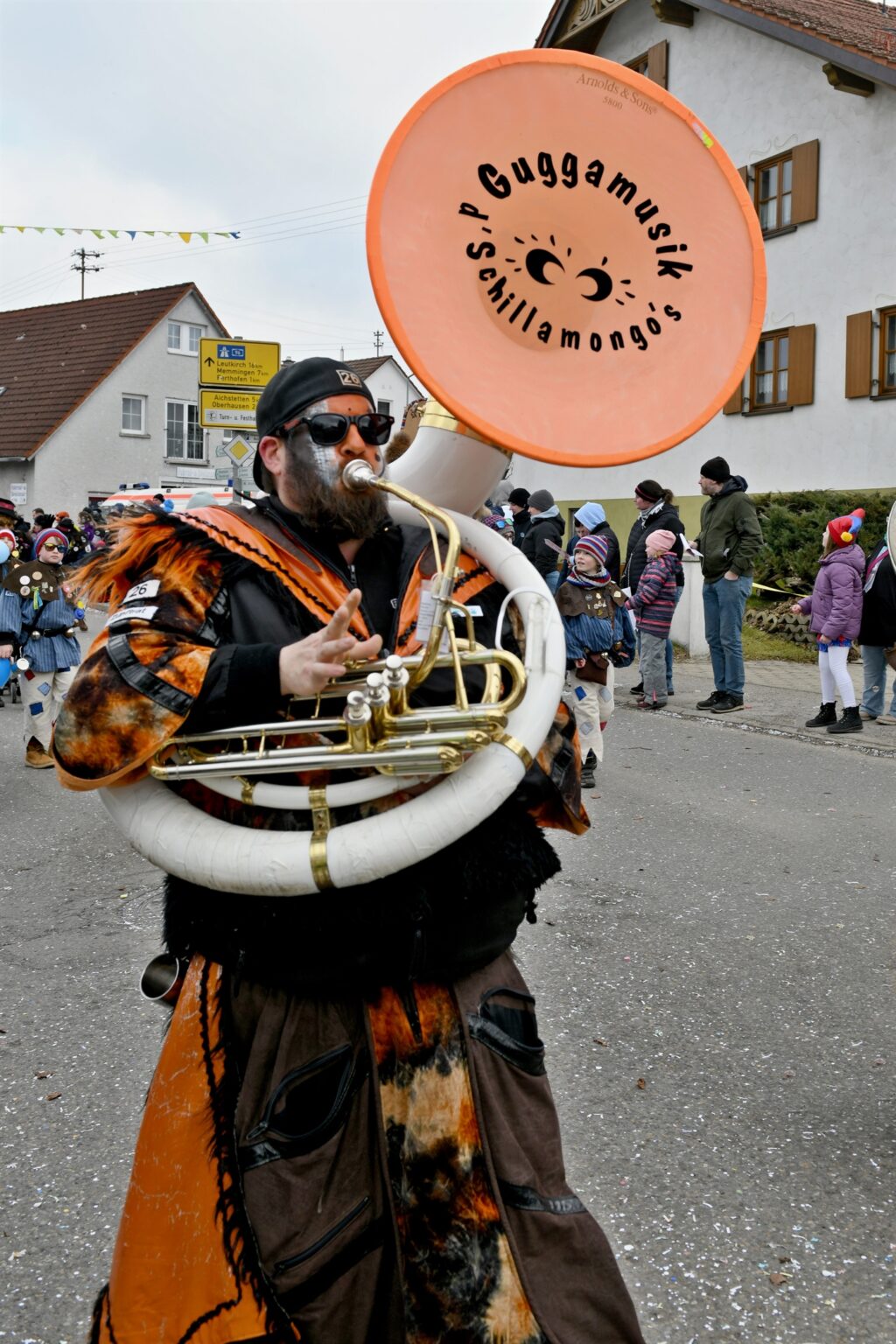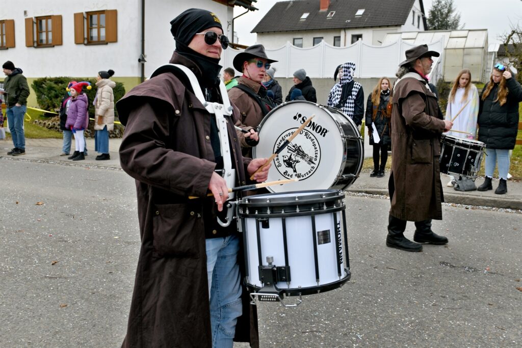 Höhepunkte und absolute Hingucker beim Aitracher Gaudiwurm waren die heimischen Fußgruppen und Wagenbauer, welche die Zirkuswelt, aber auch aktuelle politische Themen der Gegenwart in Stadt und Land bunt und fantasievoll präsentieren. Die Musikkapelle der Teilgemeinde Treherz führte den Zug an, gefolgt von den Aitracher Narrenzunftgruppen Roi- und Kellaweible, den Prinzenpaaren Florentine und Andreas und Laura und Jakob sowie den Gardemädchen.