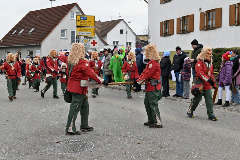 Fußgruppen sind, wie gesagt, fester Bestandteil des Aitracher Narrensprungs; so ist „Waldtraut und Mariechen“ mittlerweile aus dem benachbarten Aichstetten seit Jahren eine feste Größe, das aktuelle Thema Präsident Trump wurde passend dargestellt, man sah die Aitracher FC Allstars mit dem Affenzirkus, Gruber und Freunde, Zirkuswelt, die Bannwaldnarren, den royalen Freundeskreis, die Landjugend Volkratshofen mit dem Rennzirkus, den Förderverein der glückseligen Fasnet, die Tanzschule naDANSja mit der Zirkuswelt, den MV Aitrach, die Aitracher Löwen.