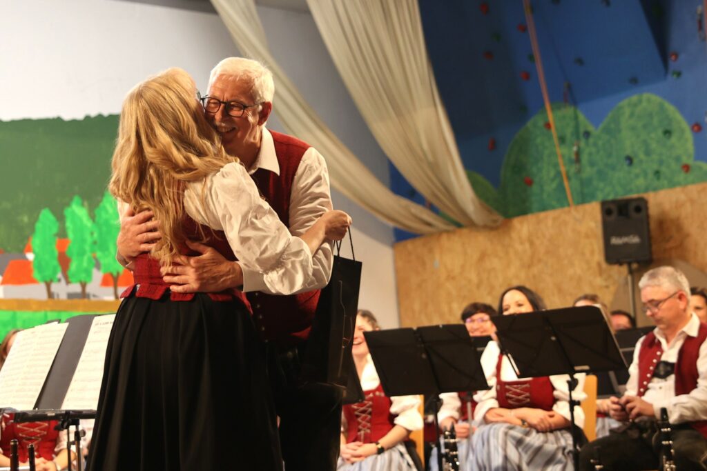 Zum Abschluss brachte die Egerländer-Formation die Halle noch einmal zum Beben. Mit Klassikern wie der „Luftballon-Polka“ und dem stimmungsvollen „Bis bald, auf Wiedersehn“ (gesungen von Dirigent Josef Möslang gemeinsam mit Jasmin Waldmann) verabschiedete sich die Kapelle von ihrem Publikum.