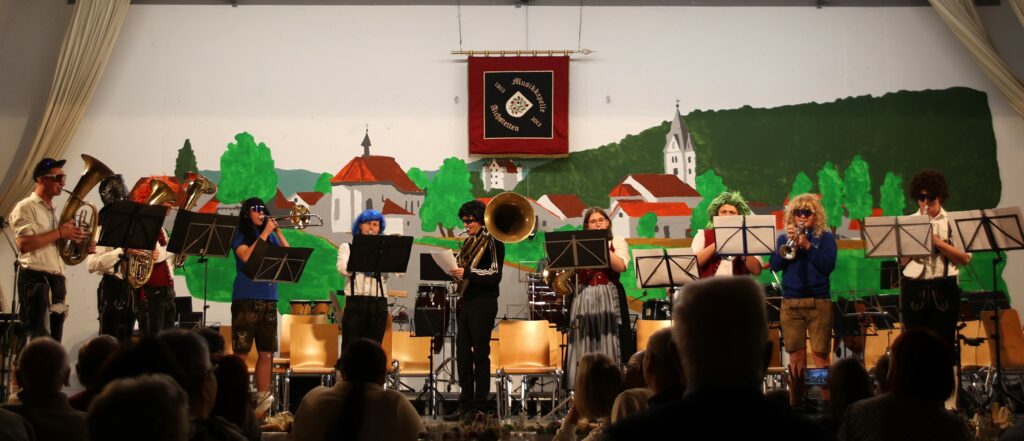 Nach dem konzertanten und feierlichen ersten Teil ging es im zweiten Teil des Abends deutlich lockerer und unterhaltsamer zu. Verschiedene Ensembles der Musikkapelle zeigten, was musikalische Vielfalt und Spielfreude in Aichstetten bedeuten – mit einer bunten Mischung aus Show, Humor und musikalischem Können.