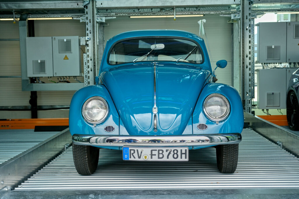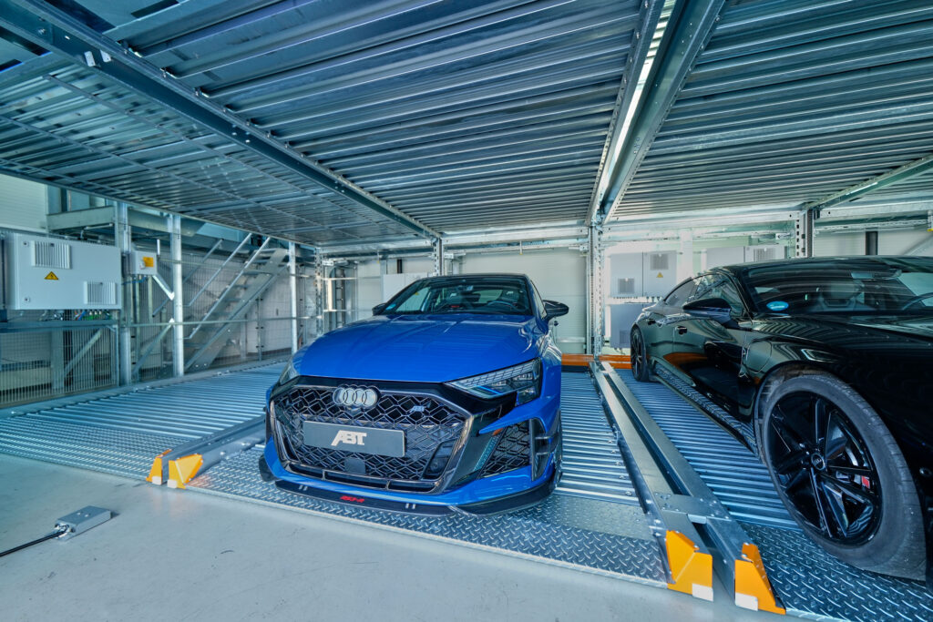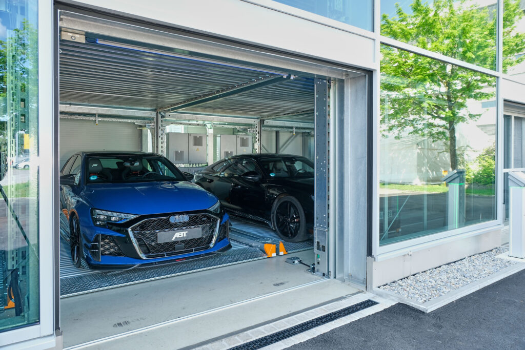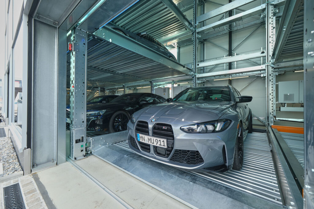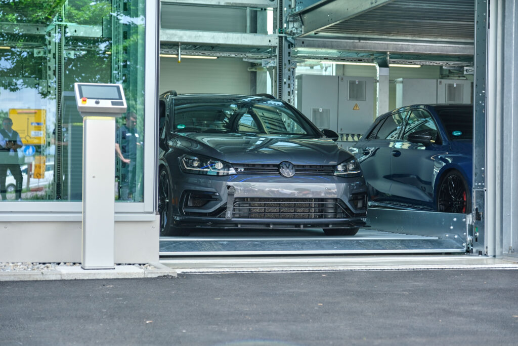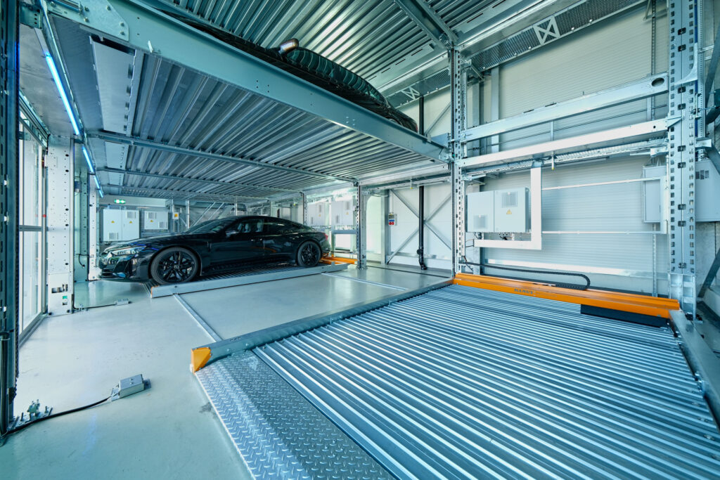 Die Puzzle-Parksysteme von Typ kVario nehmen die Fahrzeuge an der Einfahrtsebene auf und bringen sie von dort aus an ihren Stellplatz im System-Inneren. Foto: Ingo Jensen/Klaus Multiparking