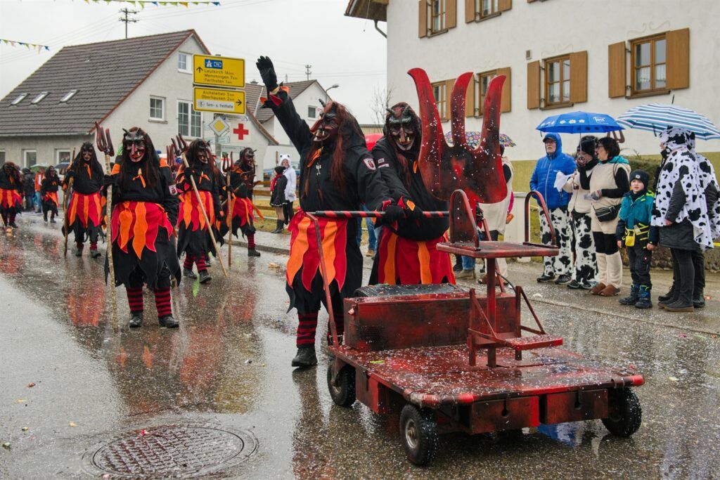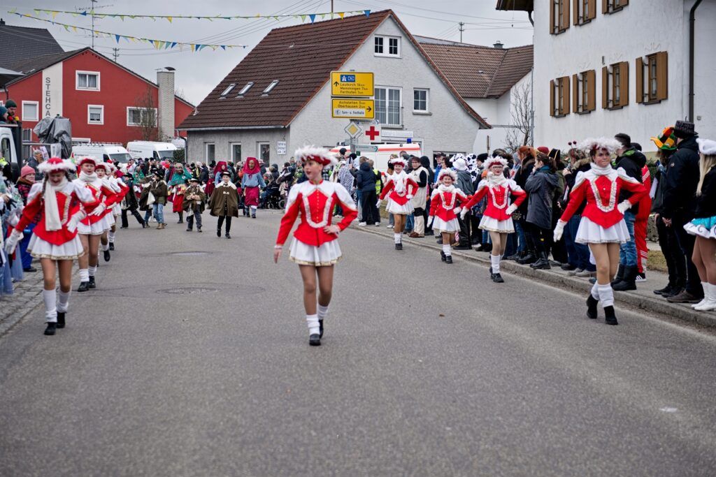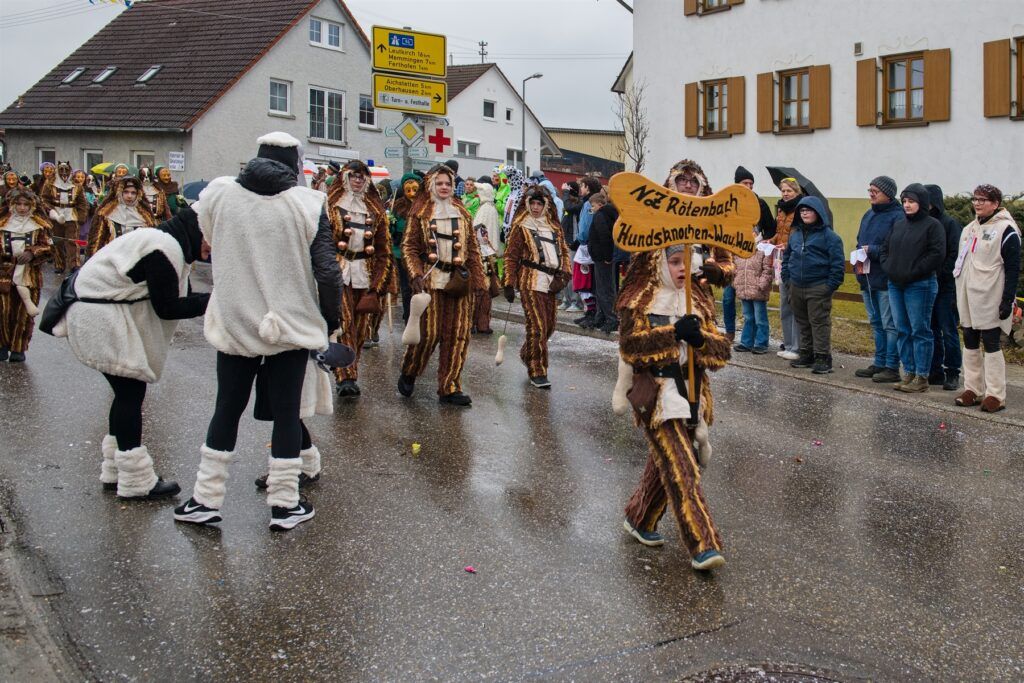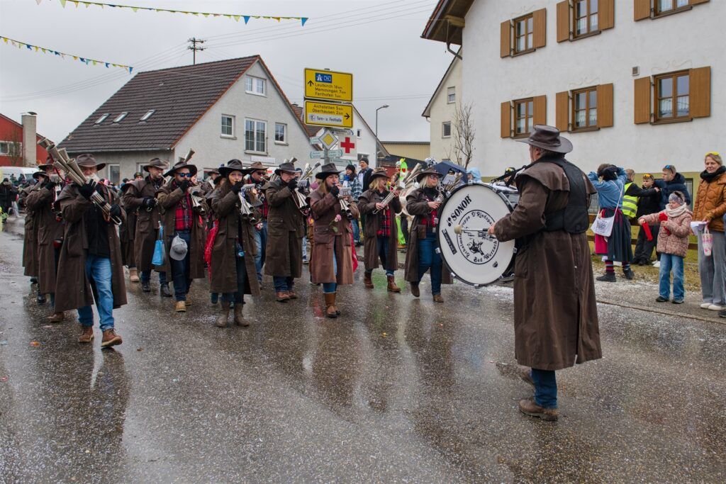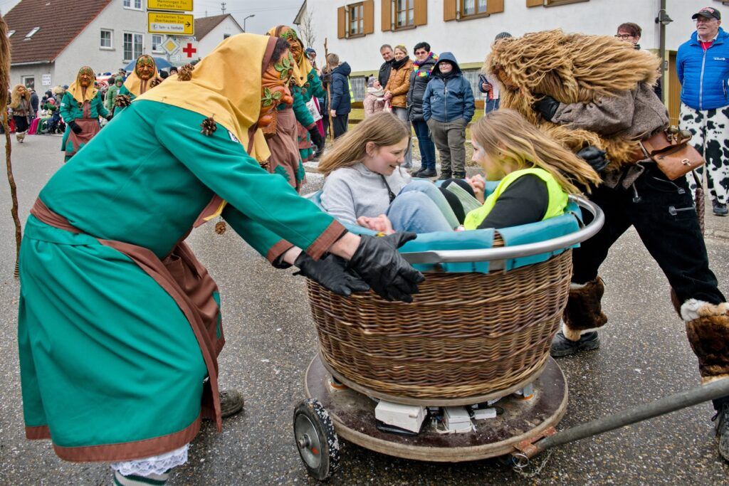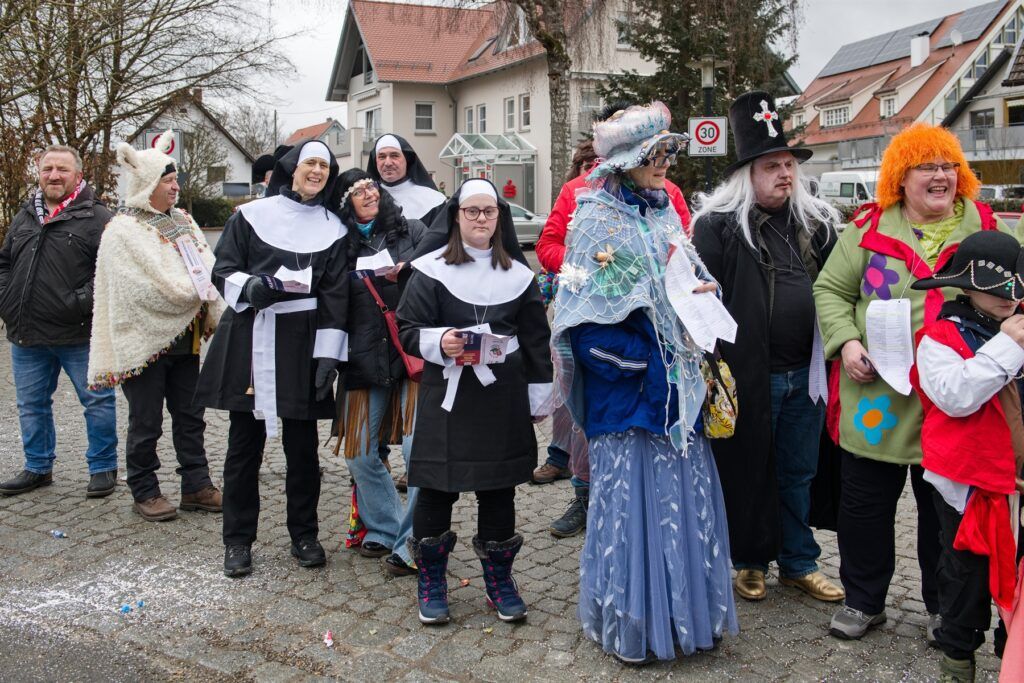 Aitrach – Getreu dem diesjährigen Motto der Aitracher Fasnet „Auf dem Bauernhof“ präsentierten sich am Samstag viele Fußgruppen der heimischen Narrenzunft beim traditionellen Narrensprung in der Illertalgemeinde. Mehr als 3000 Mitwirkende in 75 Gruppen sorgten für Hochstimmung beim zweistündigen Umzug. Hästräger von 35 Narrenzünften der alemannischen Fasnet, dem bayerischen Fasching, Prinzenpaare und Gardemädchen, Lumpenkapellen, Fanfarenzüge, Schalmeien und Blaskapellen begeisterten die zahlreichen Besucher.