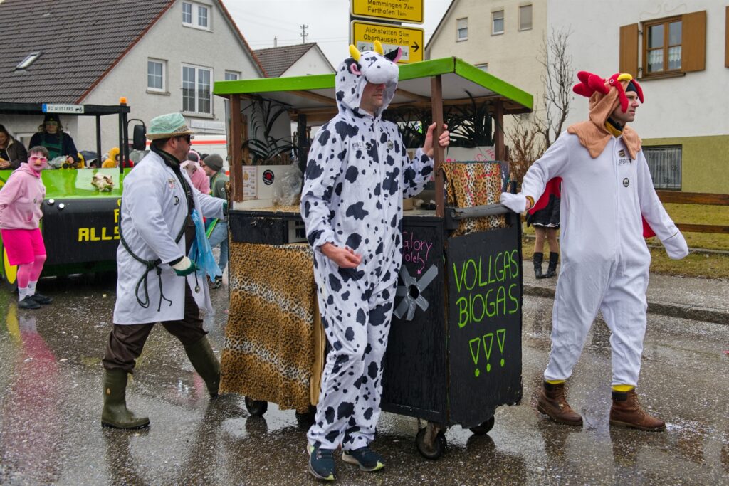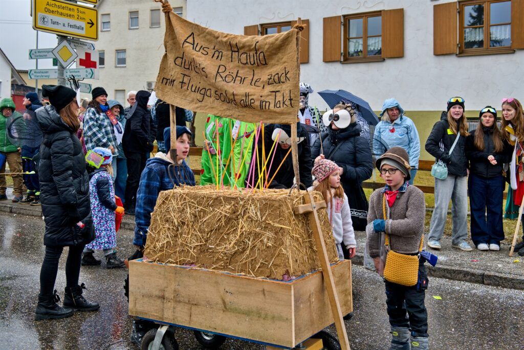 Höhepunkte und absolute Hingucker beim Aitracher Gaudiwurm waren die heimischen Fußgruppen und Wagenbauer, welche die Landwirtschaft, aber auch aktuelle politische Themen der Gegenwart in Stadt und Land bunt und fantasievoll präsentieren.