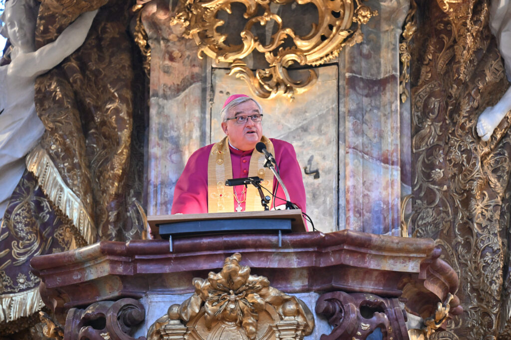 Bischof Karl-Heinz Wiesemann aus Speyer bei der Predigt in der Basilika am Vorabend des Blutritts. Foto: Stadt Weingarten