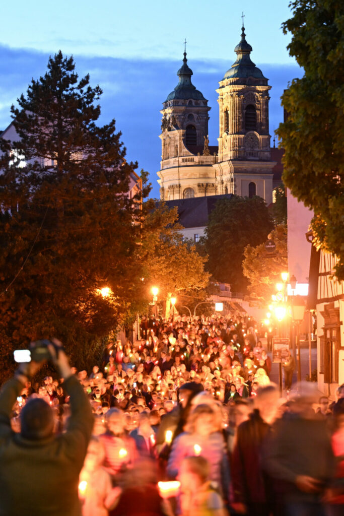 „Der Reiter, der dieses Blut Christi in die Welt hinausträgt, wird zum Botschafter dieser so einfachen und deshalb ein Leben lang herausfordernden Botschaft: Mach es wie Gott, werde und bleibe Mensch“, schloss der Bischof seine Predigt. Im Anschluss zog er mit Tausenden Gläubigen in einer nächtlichen Lichterprozession durch die Stadt auf den Kreuzberg. Danach luden Impulse und Lieder in der Basilika die Pilgerinnen und Pilger dazu ein, das Gehörte nachklingen zu lassen.