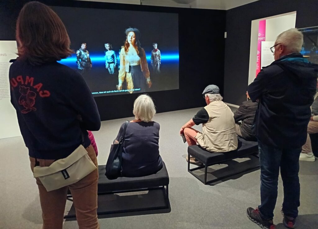 Besucher lauschen den KI-generierten historischen Figuren; Foto: Herbert Eichhorn