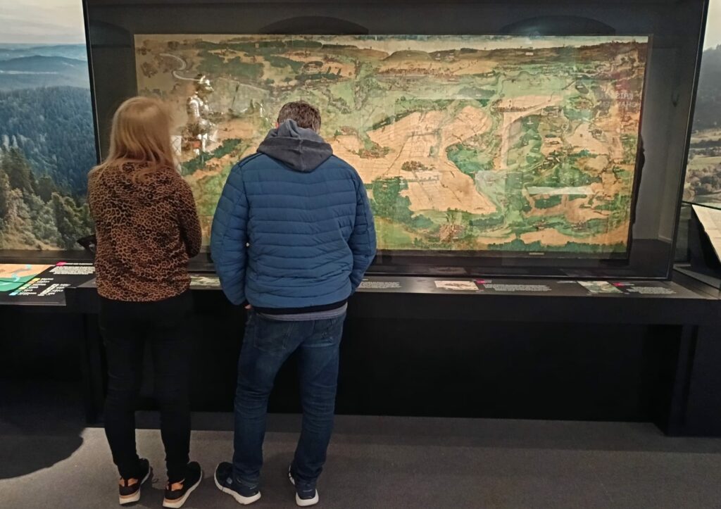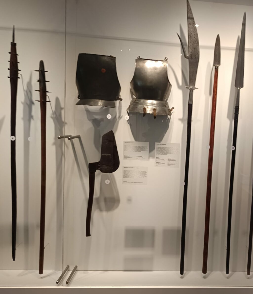 Überhaupt fällt der Blick in allen Räumen auf Geschriebenes und Gedrucktes, das in der Regel im Original in Vitrinen präsentiert wird. Dort findet man nicht nur die wichtigsten Druckschriften beider Parteien in den Konflikten der Reformationszeit und natürlich auch die berühmten Zwölf Artikel, die Programmschrift des Bauernkrieges. In den Vitrinen entdeckt man zum Beispiel auch die prachtvolle Urkunde eines Vertrags, den das Kloster Schussenried im Jahr 1448 mit seinen Untertanen schloss. Es hatte also auch schon früher Konflikte zwischen Obrigkeiten und Bauern gegeben, die man vertraglich zu regeln versuchte. Viel geholfen hat das allerdings offensichtlich nicht. Einige Vitrinen weiter wird ein recht dicker Band aus dem Krisenjahr 1525 präsentiert, in dem die Beschwerden der Schussenrieder Untertanen gesammelt wurden. Der Auseinandersetzungen verschärften sich weiter und im März des Jahres plünderten die Bauern schließlich das Kloster.