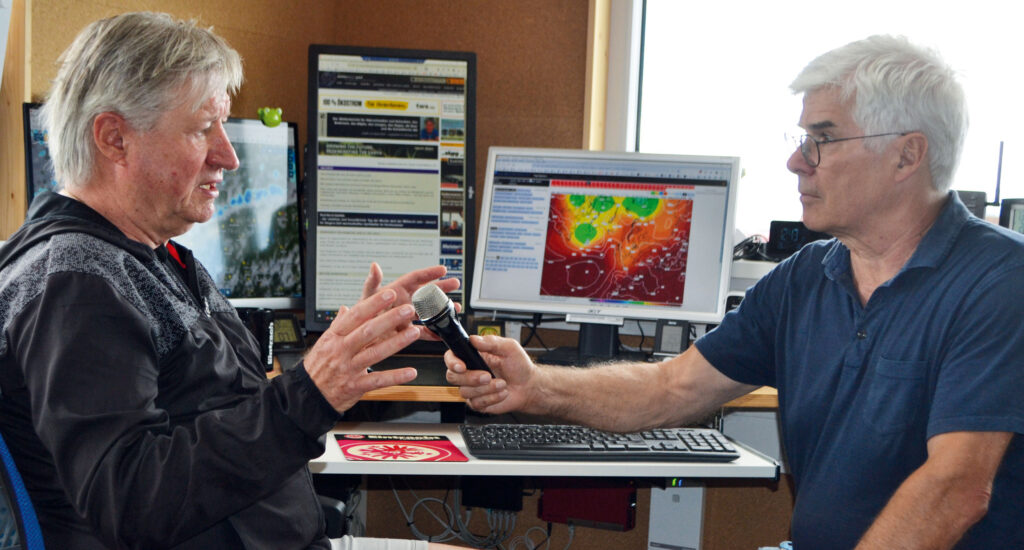 Roland interviewt Roland: Blix-Chefredakteur Roland Reck (rechts) im Gespräch mit Wetter-Papst Roland Roth.