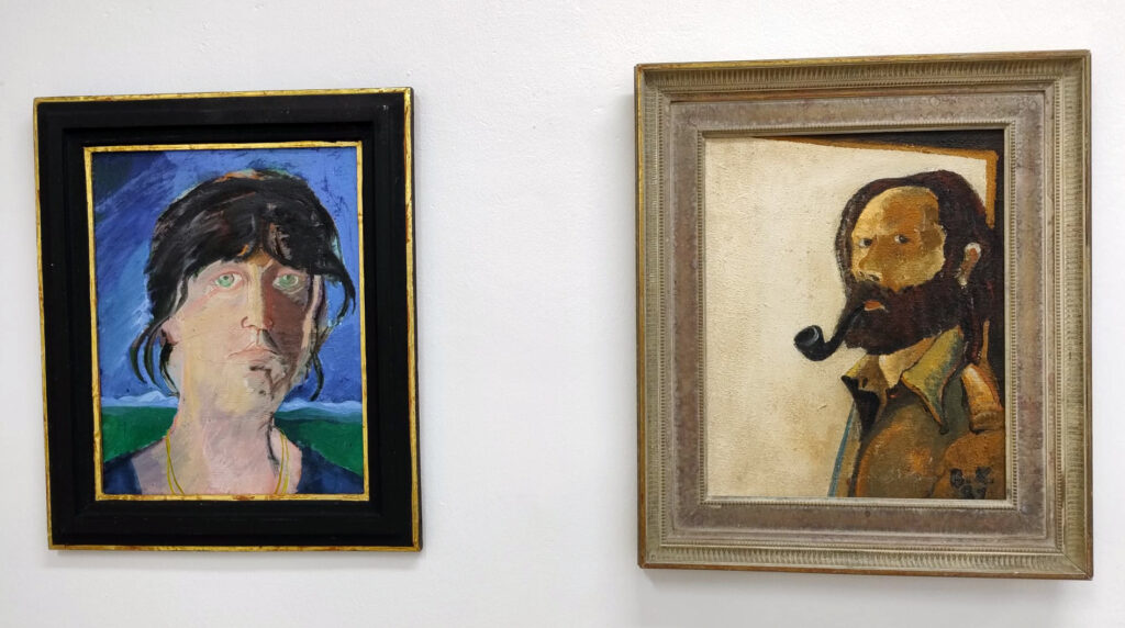 Edith Kösel, Selbstbildnis III, 1984 und Berthold Kösel, Selbst mit Pfeife, 1981