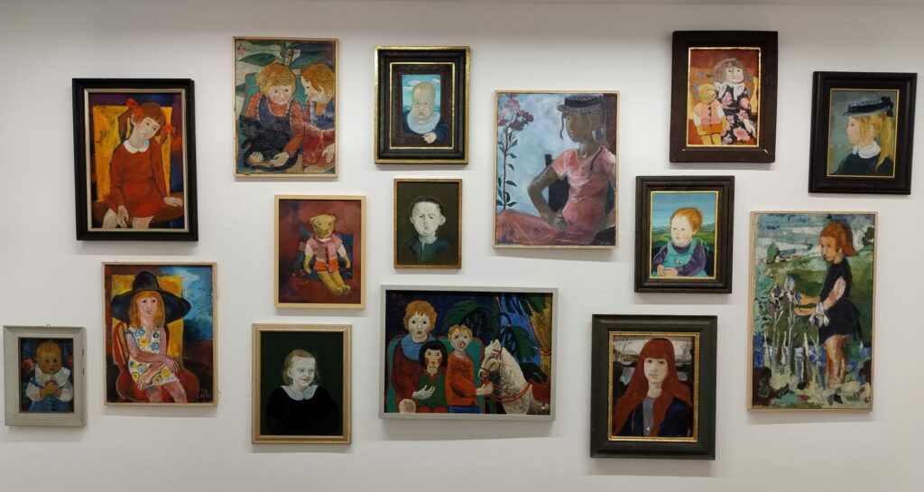 Die Ausstellung im ehemaligen Kreuzgang und in den angrenzenden Räumen ist nicht nach den einzelnen Künstlern der Familie gegliedert, sondern nach jeweils auch benannten thematischen Gruppen: „Glaube“, „Engel“, „Schöpfung“, „Landschaft“, „Mensch“, „Familie“, „Märchen“, „Mythen“, „Tod“. So werden die wechselseitigen Einflüsse deutlich, aber auch die unterschiedlichen Herangehensweisen, ja die unterschiedlichen Charaktere. Es ist zum Beispiel gut nachvollziehbar, wenn man bei Judith eine Tendenz „zum Schweren“ und bei ihrer Schwester Hendrike eine „zum Leichten“ zu erkennen glaubte. Aber bei allen Unterschieden wird doch eine allen gemeinsame Haltung zum künstlerischen Schaffen und vielleicht zum Leben überhaupt greifbar, ebenso wie eine enge Verbundenheit innerhalb der Familie.