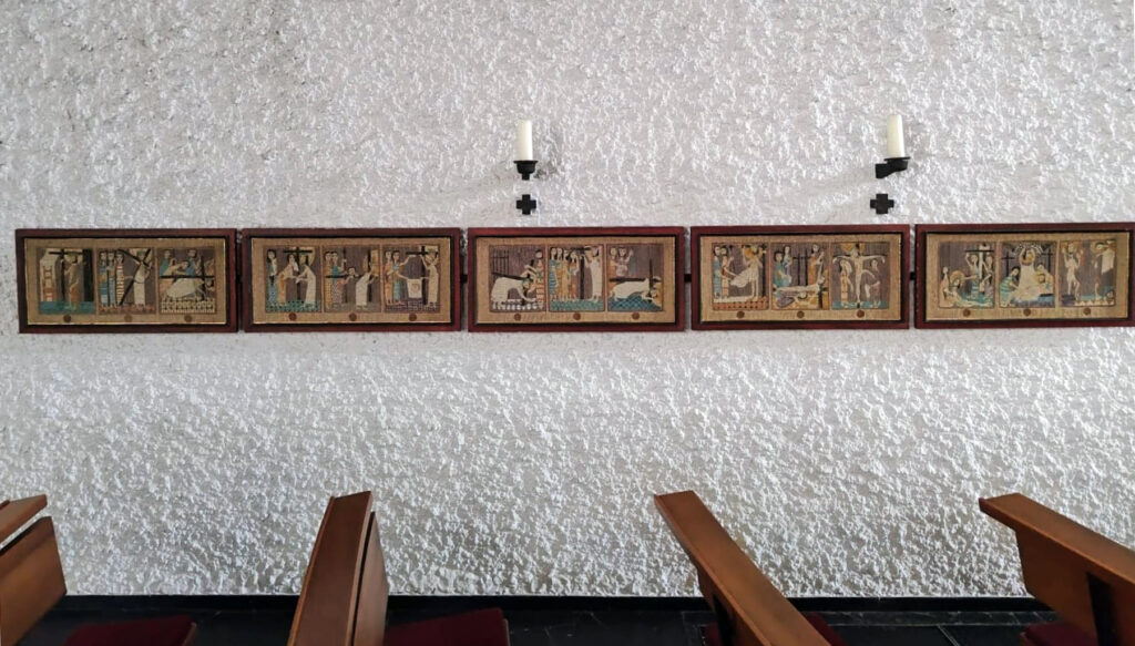 Nachstehend weitere Impressionen aus der Saulgauer Ausstellung sowie aus der Kirche St. Fidelis in Sigmaringen, deren gemeinsam geschaffene Ausstattung ein frühes Hauptwerk von Edith und Berthold Kösel darstellt.