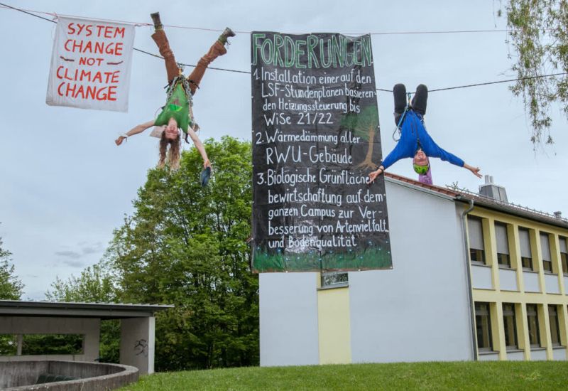 Was ich hier aber auch betonen möchte, sind die Erfahrungen aus der Verhandlung am Amtsgericht Ravensburg. Für die Staatsanwaltschaft und das Gericht ging es ausschließlich um die Frage, ob Ertel und die Aktivisten eine Ordnungswidrigkeit begangen haben. Dass es bei dieser Aktion darum ging, durch ganz konkrete einfache Maßnahmen das Klima und die Umwelt zu schützen, wurde vom Gericht ignoriert. Ich verweise auf die Aussage meines zweiten Rechsanwalts Professor Balensiefen vor Gericht (siehe unten, bzw. Anhang), es sei meine Pflicht als Landesbeamter, bei Verstößen der Hochschule gegen das Klimaschutzgesetz und die Verordnung zum Energiesparen, aktiv zu werden. Ich bin der Meinung, dass die Gerichte bei Verfahren gegen Umweltaktivisten auch diese andere Seite in die Waagschale werfen sollten.”