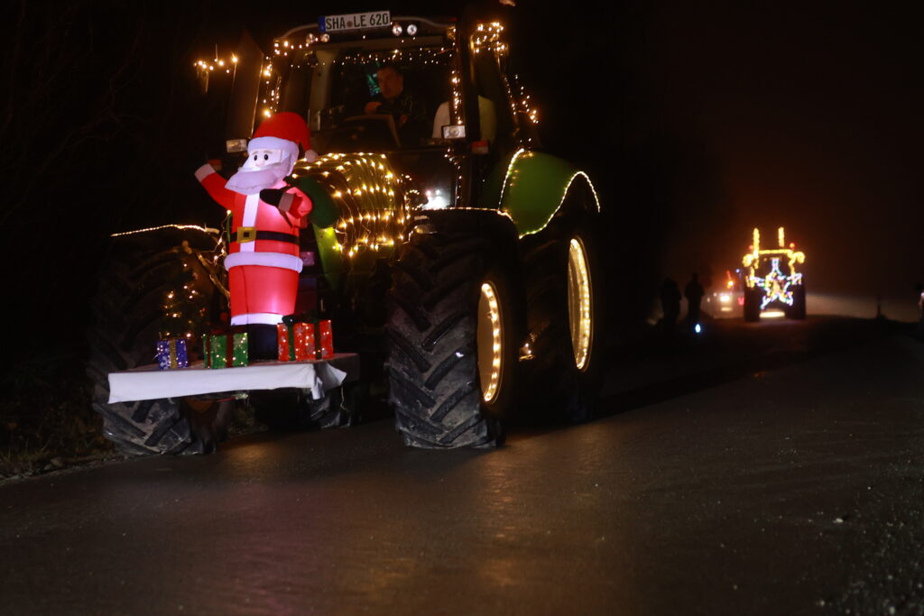 Am Abend vor dem 3. Adventssonntag, so berichtet er, verwandelte sich die Hohenloher Landstraße in Schwäbisch Gmünd in ein funkelndes Lichtermeer. Rund 50 festlich geschmückte Traktoren zogen die Straße hinan und sorgten für staunende Gesichter entlang der Strecke. An den Fahrzeugen leuchteten Lichterketten, blinkende Sterne und kunstvoll gefertigte Weihnachtsfiguren, Schneemänner, Rentiere, Engel und – allem Anschein nach gleich mehrere Weihnachtsmänner. In den Ortschaften rund um Waldstetten drängten sich die Menschen am Straßenrand, Kinder winkten begeistert, während Eltern fotografierten und filmten.