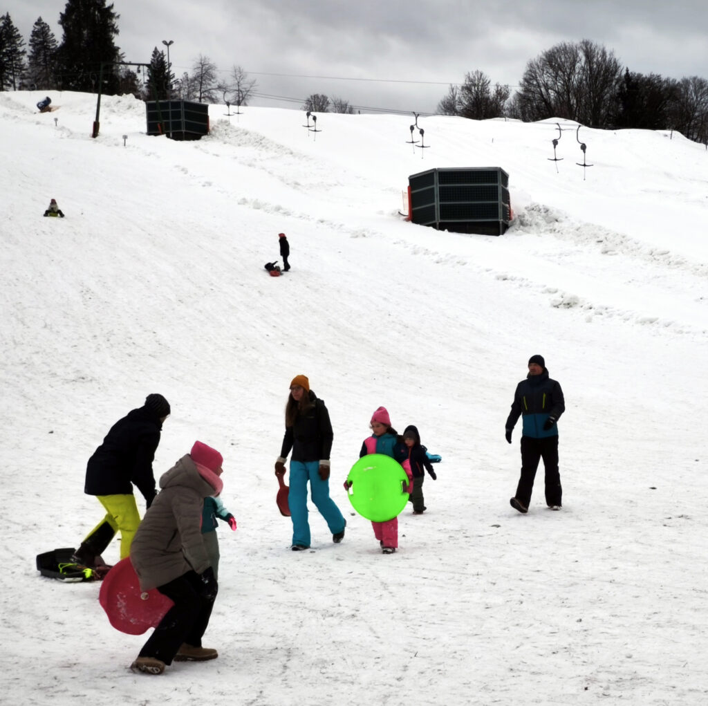 Gäste aus Wuppertal (Bild) und England berichten von großem Spaß im frischen Schnee. Wer die Anfahrt mit dem Auto wählt, freut sich über nahegelegene Parkmöglichkeiten. Für eine wohlverdiente Stärkung nach den Abfahrten laden die Käsealm und ihr reichhaltiges Angebot ein, darunter der berühmte Kaiserschmarren; auch Après-Ski-Liebhaber kommen hier auf ihre Kosten. Tische und Bänke sind auch im Freien aufgestellt.