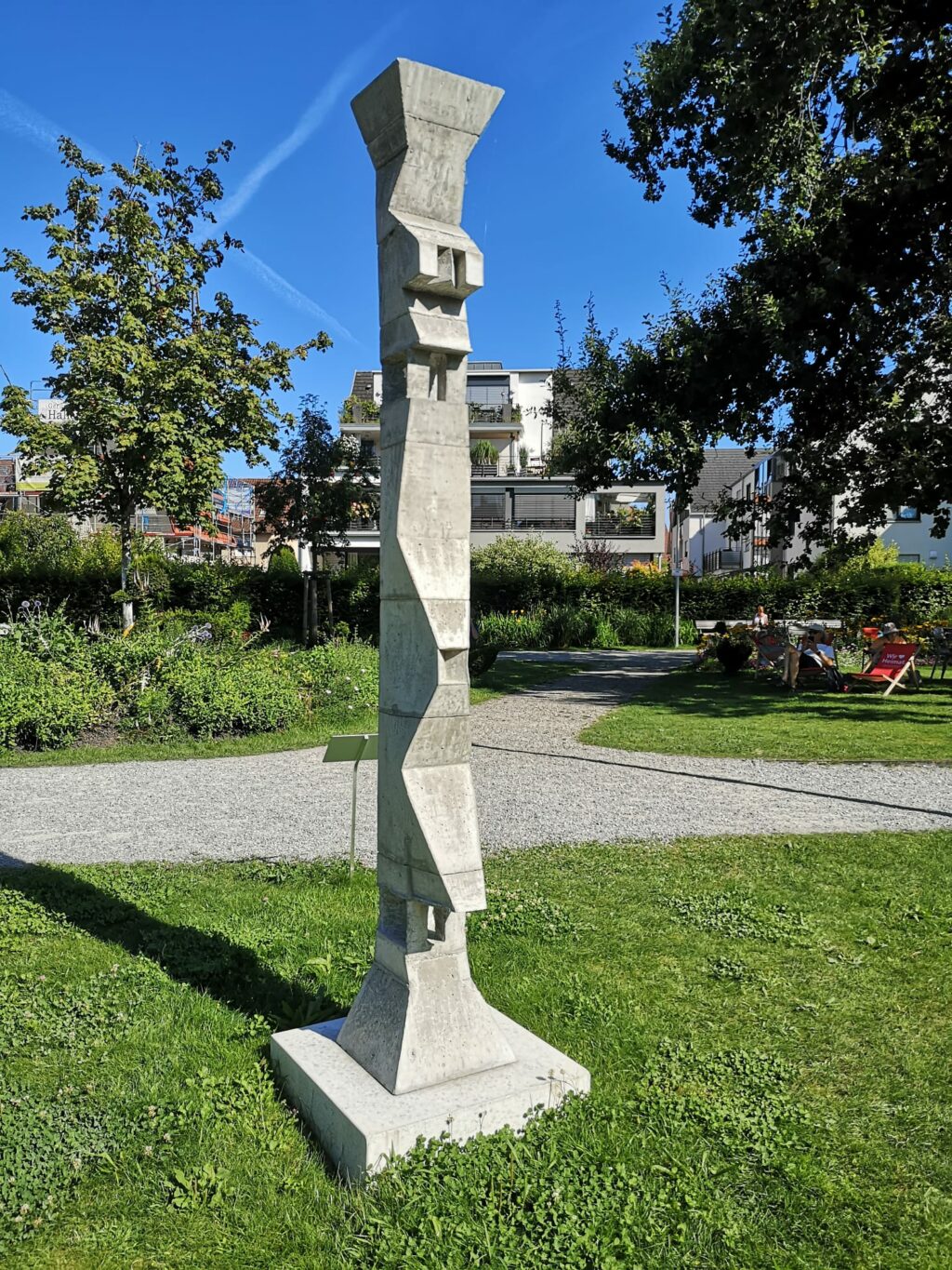Es gibt also eine große Vielfalt an attraktiver moderner Kunst zu entdecken auf einem solchen Kunstspaziergang über die Landesgartenschau. Gewissermaßen im Vorbeigehen bekommt man die unterschiedlichsten Möglichkeiten von heutiger Bildhauerkunst vorgeführt. Und wer nach einem solchen Rundgang noch Energie übrig hat, dem sei unbedingt noch der Besuch des „aichermagazins“ empfohlen. Der von der Stadt Isny konzipierte und anspruchsvoll gestaltete Ausstellungspavillon informiert zu Leben und Werk von Otl Aicher, dem wohl berühmtesten und einflussreichsten Designer und Gestalter der Nachkriegszeit.
