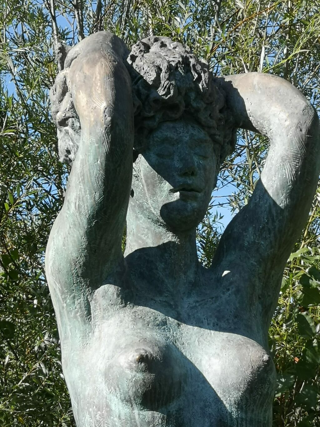 Als die klassischste bildhauerische Aufgabe gilt seit der Antike die stehende nackte menschliche Figur. Mit dem überlebensgroßen weiblichen Akt „Diotima“ von Siegfried Haas ist sie in der Auswahl auch vertreten und bildet gewissermaßen den Auftakt für die Abfolge der Kunstwerke. OB Lang berichtet, dass die Bronzefigur schon vor längerer Zeit von der Stadt aus dem Nachlass des ursprünglich aus Wangen stammenden Künstlers erworben wurde. Sie wurde angekauft schon in Hinblick auf die Landesgartenschau und sie wird auch nach diesem Sommer an ihrem Platz über der Argen verbleiben.