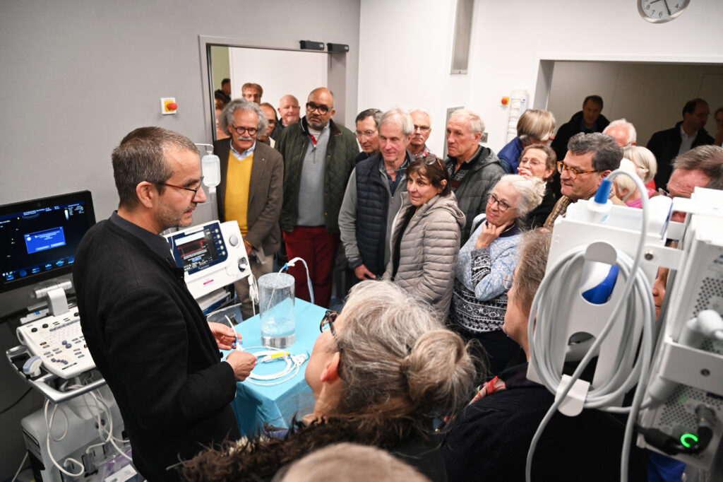 Oberarzt Dr. Gerhard Wech, Leiter des Herkatheterlabors (links, dunkles Sakko)