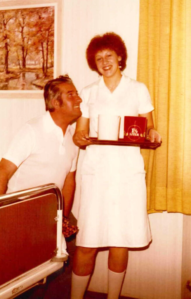Am 1. April 1980 hatte Doris Kraus angefangen, als glückliche und hochmotivierte Auszubildende aus Wolpertswende bei Mochenwangen, die nach ihrer Mittleren Reife einen von 36 Plätzen von 600 Bewerberinnen als Pflegefachkraft ergattert hatte. Ihre erste Ausbildung allerdings war es nicht: Zuvor hatte Doris Kraus Hotelfachfrau gelernt. „Ich konnte hier gutes Geld verdienen und mir dadurch etwas zurücklegen, um mir die Ausbildung zur Pflegefachkraft leisten und mir meinen Unterhalt selbst finanzieren zu können. Meine Eltern hatten einen Bauernhof, ich hatte vier Geschwister und war die Einzige, die auf die Realschule durfte. Ich wollte meinen Kopf eben durchsetzen und meinen Traumberuf Krankenschwester erlernen, aber von den 400 Mark Gehalt – 120 gingen für das Wohnheim weg – konnte man kaum leben. Deshalb brauchte ich eine finanzielle Reserve.“