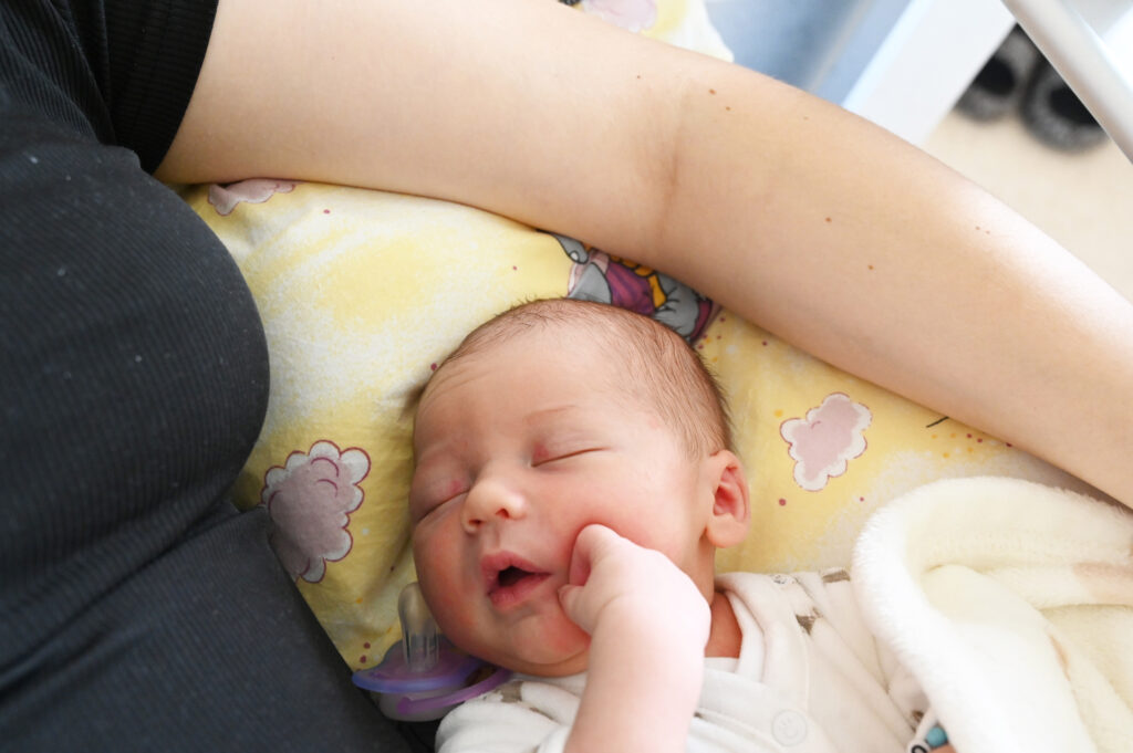 Die 19-jährige Mutter, die mit ihrem Mann in Ertingen bei Riedlingen wohnt und vor drei Jahren wegen des russischen Überfalls aus dem ostukrainischen Charkiw nach Deutschland flüchtete, schloss den Kleinen sogleich ans Herz. „Er ist ganz ruhig und zufrieden, und ich bin auch sehr dankbar, dass wir hier so freundlich und herzlich behandelt wurden und die Hebammen so um mich bemüht waren, obwohl ich manche deutsche Worte noch nicht ganz verstehe“, sagte die Mutter, die sich auch wegen der Kinderklinik am EK für die Geburt in Ravensburg entschied. „In der 39. Woche habe ich mich sehr schlecht gefühlt, damals habe ich mich beschlossen, zur Sicherheit nach Ravensburg zu gehen.“ Redkos erstes Kind, Tochter Sofia, war vor drei Jahren kurz nach Kriegsbeginn in der Ukraine auf die Welt gekommen, ihr Sohn Eugen in Biberach.