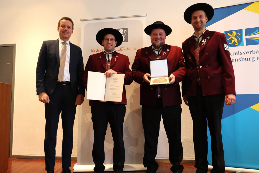 Mit der Pro-Musica-Plakette werden Vereinigungen geehrt, die sich seit mindestens einhundert Jahren um die Pflege und Förderung der Musik verdient machen. Landrat Sievers betonte in seiner Ansprache die enorme kulturelle Bedeutung der Musikkapellen: „Blasmusik ist kein Hobby, das man nebenbei macht. Sie verlangt Zeit, Kraft, Ideen und nicht zuletzt eine Menge Können. Was hier seit Generationen geleistet wird, verdient unseren größten Respekt.“ Sievers weiter. „Die ausgezeichneten Musikkapellen arbeiten traditionell ehrenamtlich. Sie erhalten keine Vergütung und stellen ihre musikalische Arbeit in den Dienst der Allgemeinheit. Damit steht die Auszeichnung nicht nur für musikalisches Können, sondern auch für gelebtes bürgerschaftliches Engagement.“