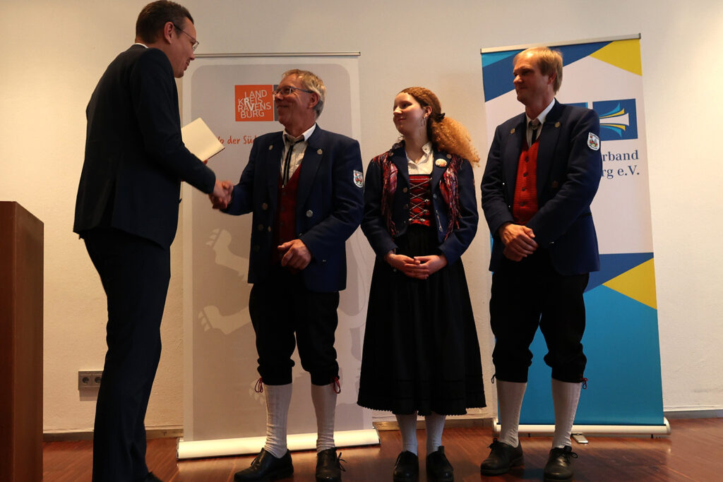 Leutkirch – In einem feierlichen Rahmen wurden am vergangenen Sonntag, 16. November, in der Festhalle Leutkirch elf Musikkapellen aus dem Landkreis Ravensburg mit der Pro-Musica-Plakette ausgezeichnet. Aus dem Verbreitungsgebiet der Bildschirmzeitung wurden die Musikvereine Immenried, Rohrdorf und Willerazhofen mit der Plakette bedacht. Weiter erhielten die Auszeichnung: Blitzenreute, Fleischwangen, Fronhofen, Molpertshaus, das Stadtorchester Ravensburg, Schmalegg, der MV St. Christina Ravensburg und Wilhelmskirch. Die hohe Auszeichnung des Bundespräsidenten wurde von Landrat Harald Sievers an die Vorstandschaften persönlich überreicht.
