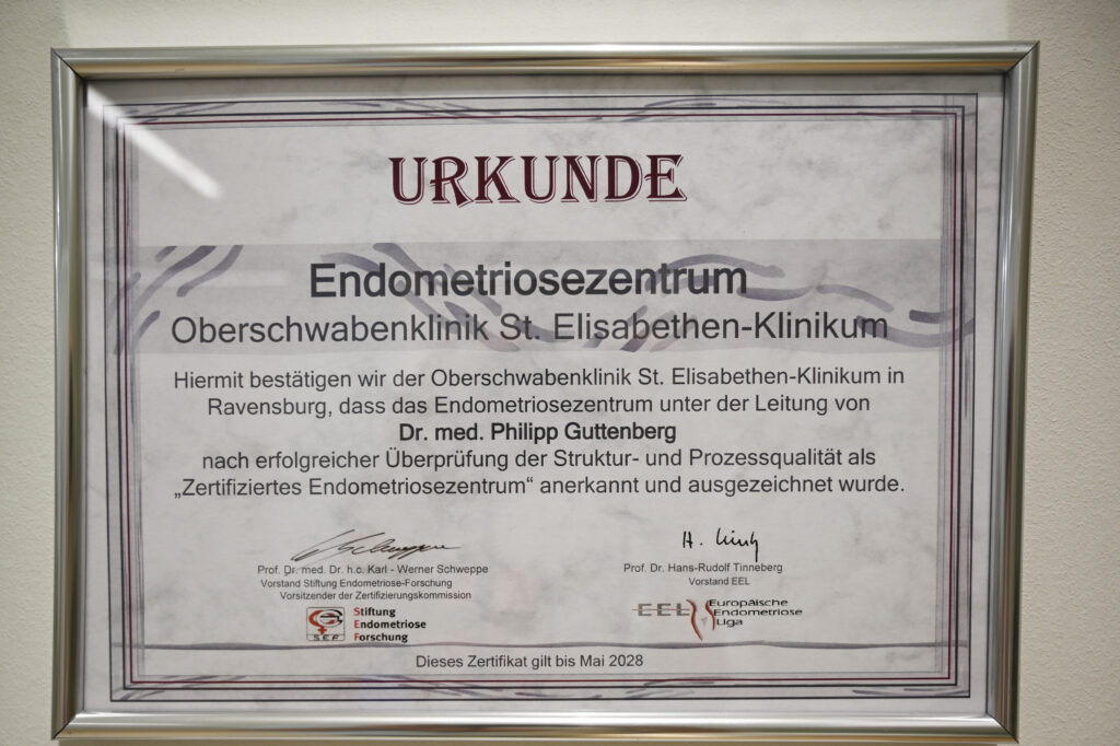 Ravensburg – Das klinische und wissenschaftliche Endometriosezentrum am St. Elisabethen-Klinikum Ravensburg der Oberschwabenklinik ist erfolgreich durch EuroEndoCert zertifiziert. Damit ist offiziell bestätigt: Die Versorgung von Patientinnen mit Endometriose am Standort Ravensburg erfüllt höchste medizinische und organisatorische Qualitätsstandards. Die Zertifizierung gilt als bedeutendes Gütesiegel für spezialisierte Einrichtungen in Deutschland, die sich der ganzheitlichen Betreuung dieser häufig chronischen Erkrankung widmen. Jede sechste Frau im gebärfähigen Alter ist von den Gewebewucherungen im Unterleib betroffen.