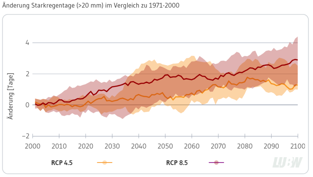 Gleichzeitig nehmen die Wetterextreme zu. Die Prognosen zeigen eine deutliche Zunahme der Tage mit Starkregen, was eine direkte Gefahr für unsere Infrastruktur, Landwirtschaft und Keller darstellt.