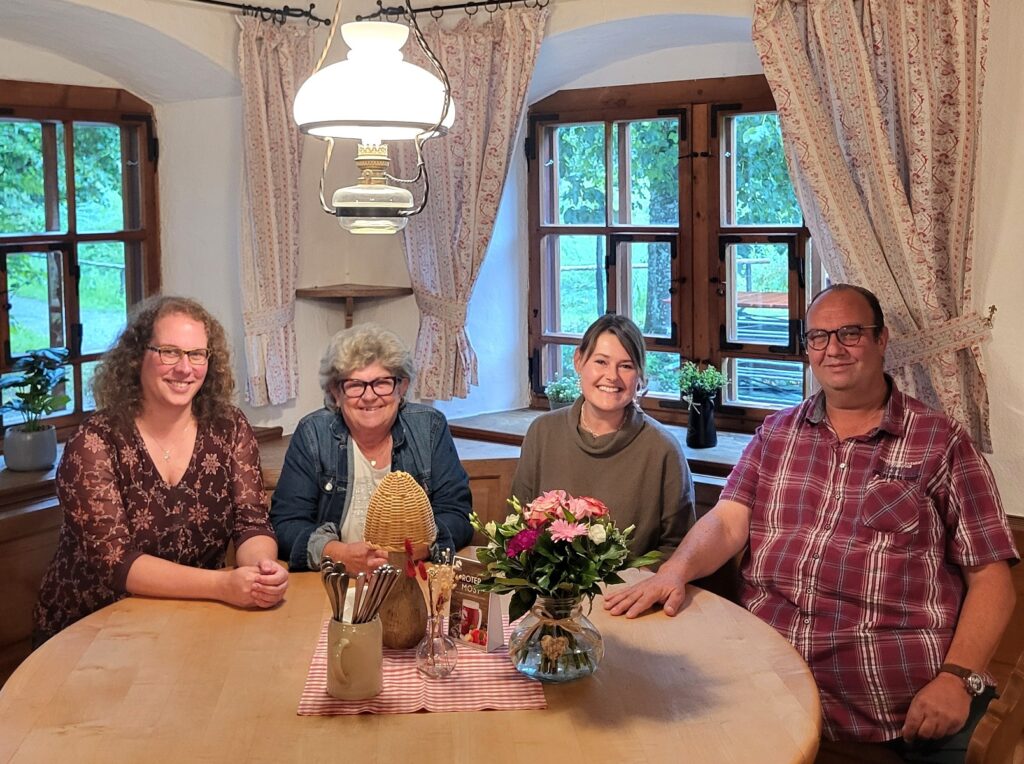 Monika Boy (Zweite von links) und Frank Boy bewirtschaften seit 1. August das Fischerhaus im Bauernhausmuseum in Wolfegg. Darüber freuen sich Dr. Tanja Kreutzer (Zweite von rechts), die Leiterin des Bauernhaus-Museums, und Simone Lipski, die Öffentlichkeitsarbeiterin des Museums. Foto: BHM