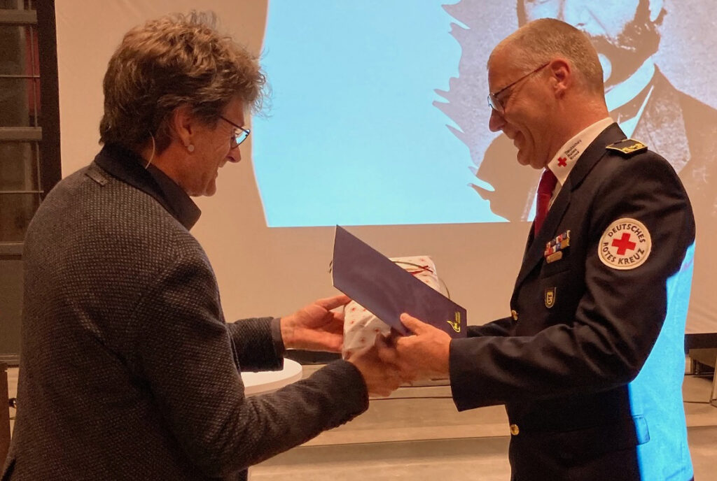 Anschließend gab es zahlreiche Ehrungen. Für insgesamt acht Mitglieder war es ein sichtlich bewegender Moment, als sie von Präsident Stefan Locher die silberne Henry-Dunant-Medaille für besondere Verdienste verliehen bekamen, sind doch manche von ihnen seit 40 Jahren dabei und viele in leitender Funktion. „Tutto fratelli“ (wir sind alle Brüder) – ein Zitat des DRK-Gründers Henry Dunant, das an diesem Abend öfter zu hören war – klang auch bei den persönlich gehaltenen Ehrungen mit. Weitere fünf Mitglieder erhielten die Medaille in Gold, darunter Barbara Gohm vom Ortsverein Kißlegg, die seit 51 Jahren aktives DRK-Mitglied ist und „selbstlos die Leitsätze des DRK lebt“. Dann folgten noch zwei 10-jährige Betriebsjubiläen in den Kindergärten und Auszeichnungen für Monika Brugger und Claudia Schmid – für besondere Verdienste bei der Flutkatastrophe im Ahrtal im Jahr 2021.