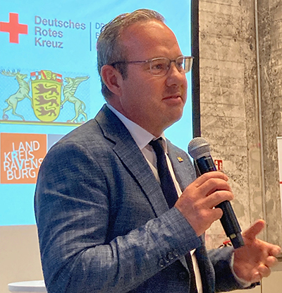 Im anschließenden neuen Format einer Talkrunde wurden Zahlen und Aktivitäten deutlicher. Claudia Schmid, Kreisjugendleiterin beim Kreisverband Wangen, erklärte die Wichtigkeit von Nachwuchsförderung. Nicolai Meffle, der neue Leiter für Soziales beim Kreisverband, konnte Neueröffnungen von Waldkindergärten in Wangen und Aitrach verkünden und gab sich zuversichtlich beim Thema Personal. „Wir bilden ja auch selbst aus“, sagte er. In fünf von sieben Städten der Ortsvereine sei das DRK inzwischen mit Kindergärten vertreten. Auch die Aktivitäten bei den Tafelläden, beim Pflegedienst, den Altkleidersammlungen wurden diskutiert. „Lumpensammler haben wir gespielt“, erklärte Jörg Kuon, der Geschäftsführer des Kreisverbands Wangen und des Bodenseekreises, zum Thema Altkleidersammlung, „Müllentsorgung ist aber nicht unsere Aufgabe“. Und verwies auf neue gut laufende Formate wie den DRK Second-hand-Laden „Henrys“ in Friedrichshafen.