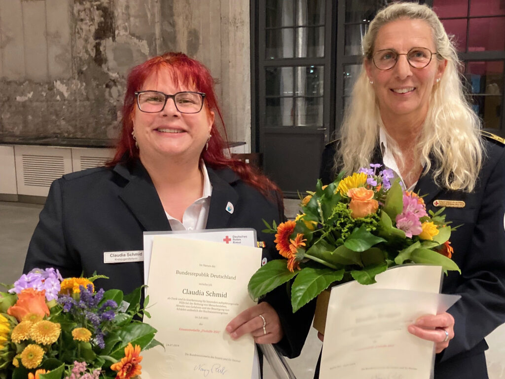 Claudia Schmid (links) und Monika Brugger erhielten Auszeichnungen für besondere Verdienste bei der Flutkatastrophe im Ahrtal im Jahr 2021. Foto: DRK (Christine King)