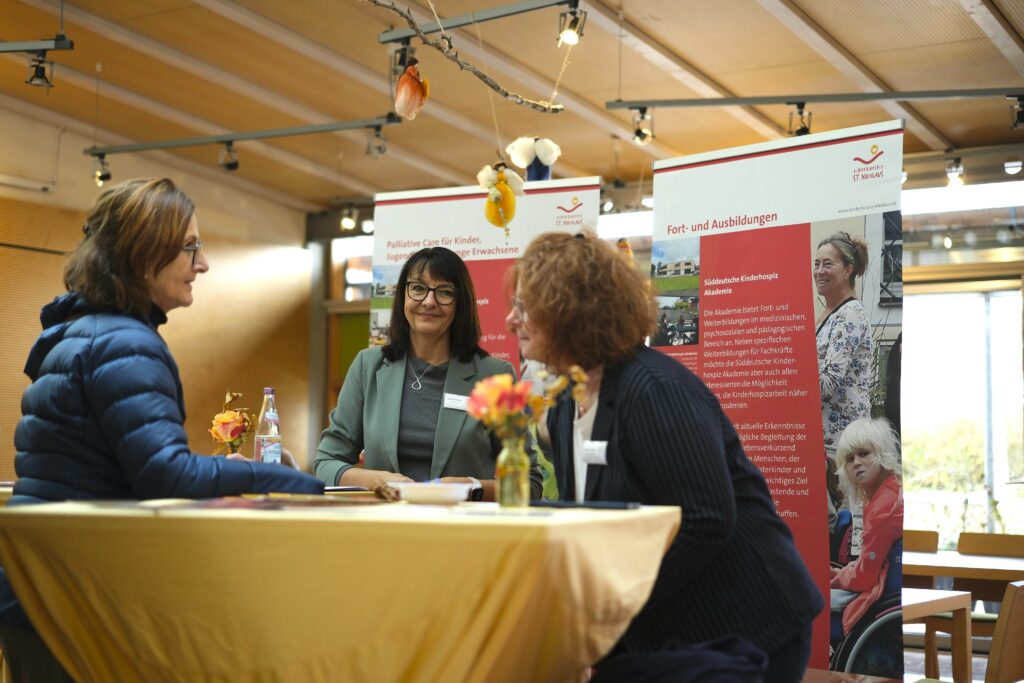 Parallel konnten sich die Gäste und Besucher gegenüber im Süddeutschen Kinderhospiz-Zentrum, einem „Haus der Begegnung“, über die Arbeit der Süddeutschen Kinderhospiz-Stiftung, der Trägerin St. Nikolaus und des Fördervereines Kinderhospiz im Allgäu informieren. Gemäß ihrer Satzungen zentralisieren sie die Kinderhospizarbeit im gesamten süddeutschen Raum. Zahlreiche Spender und Sponsoren zeigten bei ihren Besuchen, wie sehr sie diese Arbeit wertschätzen und wie wichtig ihnen die konstante wertvolle Unterstützung der betroffenen Familien ist. Die Teams des Ambulanten Kinder- und Jugendhospizdienstes Allgäu und der Süddeutschen Kinderhospiz Akademie gaben spannende Einblicke in die ehrenamtliche Kinderhospizarbeit, unter anderem über den Einsatz und die Qualifizierung der ehrenamtlich tätigen Hospizbegleiterinnen und -Begleiter.
