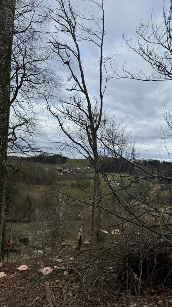 Warum fiel der Baum (und einige andere drumrum)? Dazu schreibt die Liebenau-Sprecherin: „Die Hiebsmaßnahme war notwendig, da in diesem Bereich einige Eschen, die massiv vom Eschentriebsterben befallen waren und bedingt durch starke Wurzelnekrosen teilweise schon umgestürzt sind bzw. umsturzgefährdet waren.” Und ergänzt: „Zur zuständigen Naturschutzbehörde haben wir Kontakt aufgenommen.“