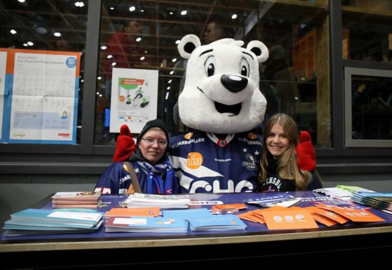 Um auf das wichtige Thema „Barrierefreiheit im Alltag“ hinzuweisen, lief kurz vor dem Einlauf beider Teams ein satirisch aufgebauter Beitrag, der so manchem Zuschauer auf den Rängen eventuell ins Gewissen geredet haben dürfte. Nach der Vorstellung der Starting 6 durfte Rollstuhlfahrerin Tabea stellvertretend für ihre Kolleginnen und Kollegen das Anspielbully einwerfen. Vor rund 2600 Zuschauern mit den Mittelstürmern beider Teams und der Schiedsrichter auf dem Eis zu stehen, war natürlich ein ganz besonderes Highlight. Zuvor hatte die Fangruppen B1-Crew und Crewsaders einen Scheck über 500 Euro an das Unterstützungsnetzwerk „Sozialsponsoring Ravensburg e.V.“ übergeben.
