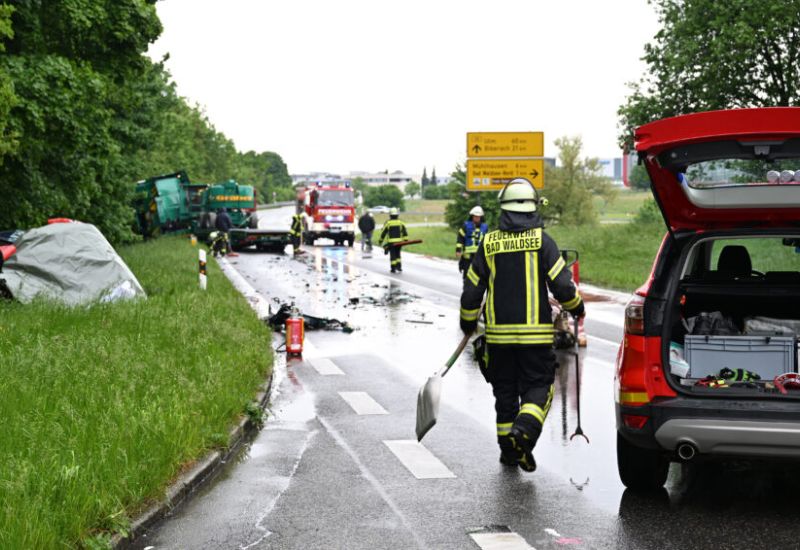 Kettenreaktion in Eriskirch: ein halbes Dutzend brennende Fahrzeuge