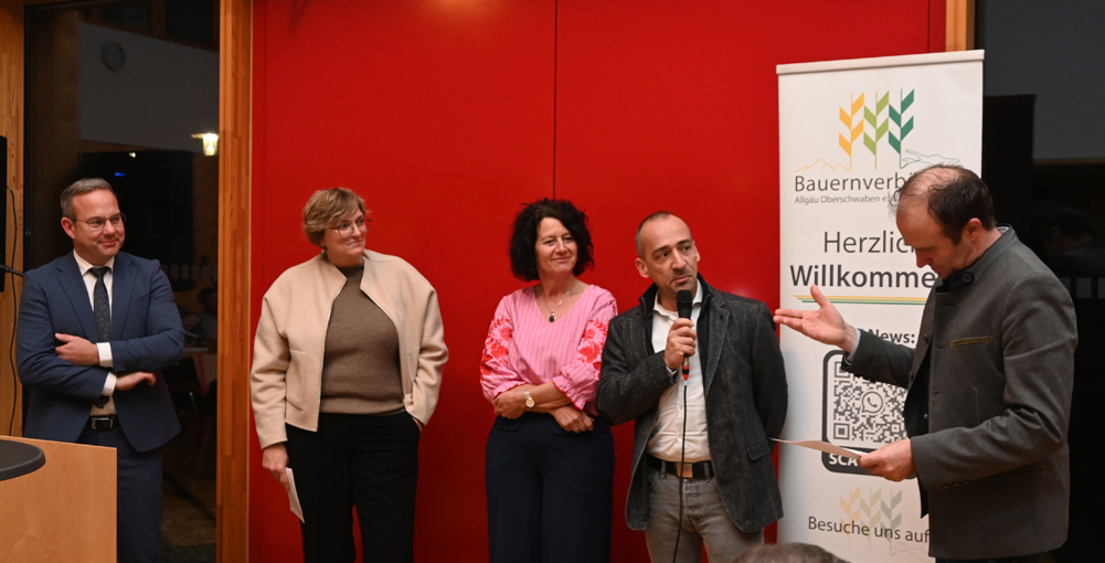 Willkommen geheißen wurden aus der Politik MdB Axel Müller, MdL Petra Krebs (Grüne) und MdL Raimund Haser (CDU) sowie Antje Rommelspacher, die für die CDU in den nächsten Landtag einziehen will. Aus dem Landesbauernverband die Vizepräsidentin Rosi Geyer-Fäßler sowie Hans Benno Wiechert und Jürgen Maurer. Von der Geschäftsstelle Bad Waldsee Stefan Loderer. Von den umliegenden Kreisverbänden Dieter Mainberger für Tettnang, Martina Magg-Riedesser und Karl Endriß für Biberach. Von der Landjugend und dem Agrargesprächskreis: Daniel Hirschmann und Jakob Sigg. Vom Verein landwirtschaftlicher Fachbildung BaWü Christine Dorn-Bohner und Stefan Käppeler. Vom Landfrauenverband Württemberg-Hohenzollern die Vizepräsidentin Christa Fuchs mit Gisela Eisele, Vorsitzende der Landfrauen Ravensburg. Von den Ämtern Thomas Lötsch, Dezernatsleiter für Kreisentwicklung, Wirtschaft und ländlicher Raum im Kreis Ravensburg, Dr. Christof Knitz, Leiter Veterinäramt Ravensburg, Andrea Gmeinder, Leiterin des Landwirtschaftsamtes Ravensburg. Von den Gemeinden Manuela Oswald, Bürgermeisterin von Amtzell, Heinrich Vincon für Bad Wurzach, Dieter Krattenmacher (Bürgermeister Kisslegg) und Peter Müller (Bürgermeister Wolfegg). Von verbundenen Unternehmen Hubertus Kleiner vom Maschinenring.