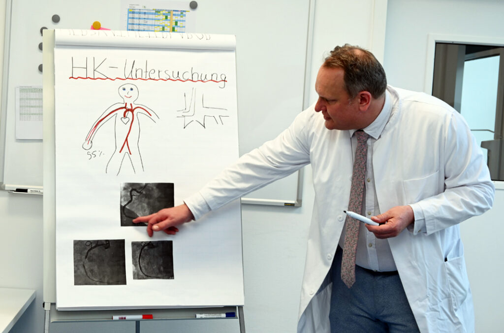Prof. Florian Seeger erläutert die Funktionsweise des neuen Herzkatheters.