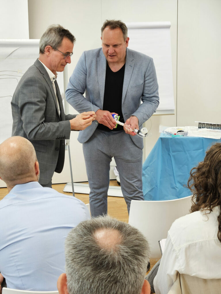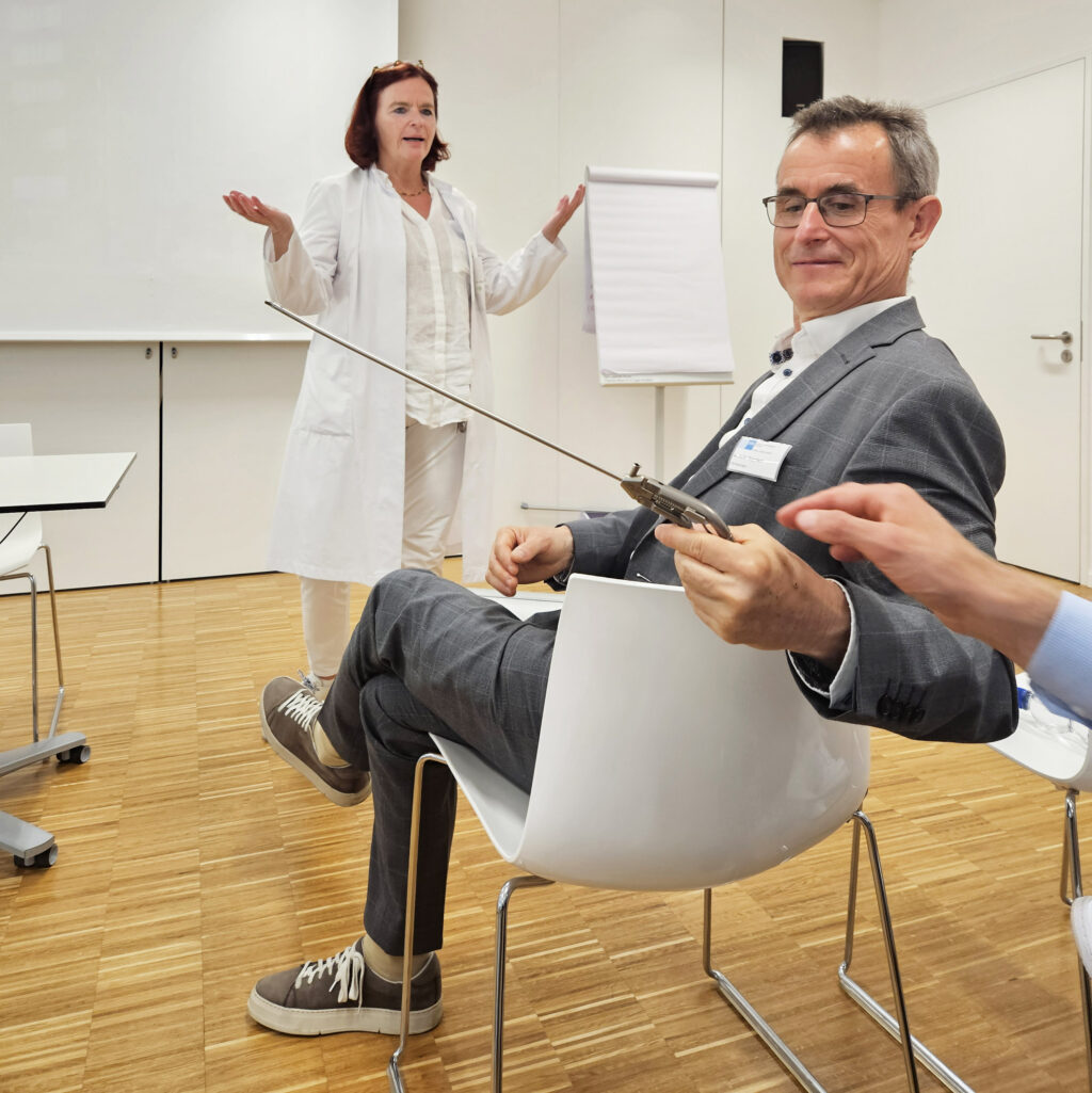 Im Fokus des Workshops standen Impulse aus der Praxis für die Hersteller. Dr. Martina Gropp-Meier, Chefärztin der Frauenklinik sowie Leiterin des Brustzentrums und des Gynäkologischen Krebszentrums, eröffnete mit einem eindrücklichen Appell an Unternehmen: „Ich bin im OP quasi mehrfach behindert – kleine Hände und Linkshänderin.“ Sie zeigte, wie stark Linkshänder im chirurgischen Alltag benachteiligt sind. Während viele Instrumente mittlerweile für kleinere Handgrößen angepasst seien, fehle es oft an Lösungen für Linkshänder. „Konstruieren Sie Instrumente für Rechts- und Linkshänder!“, lautete ihr Plädoyer.