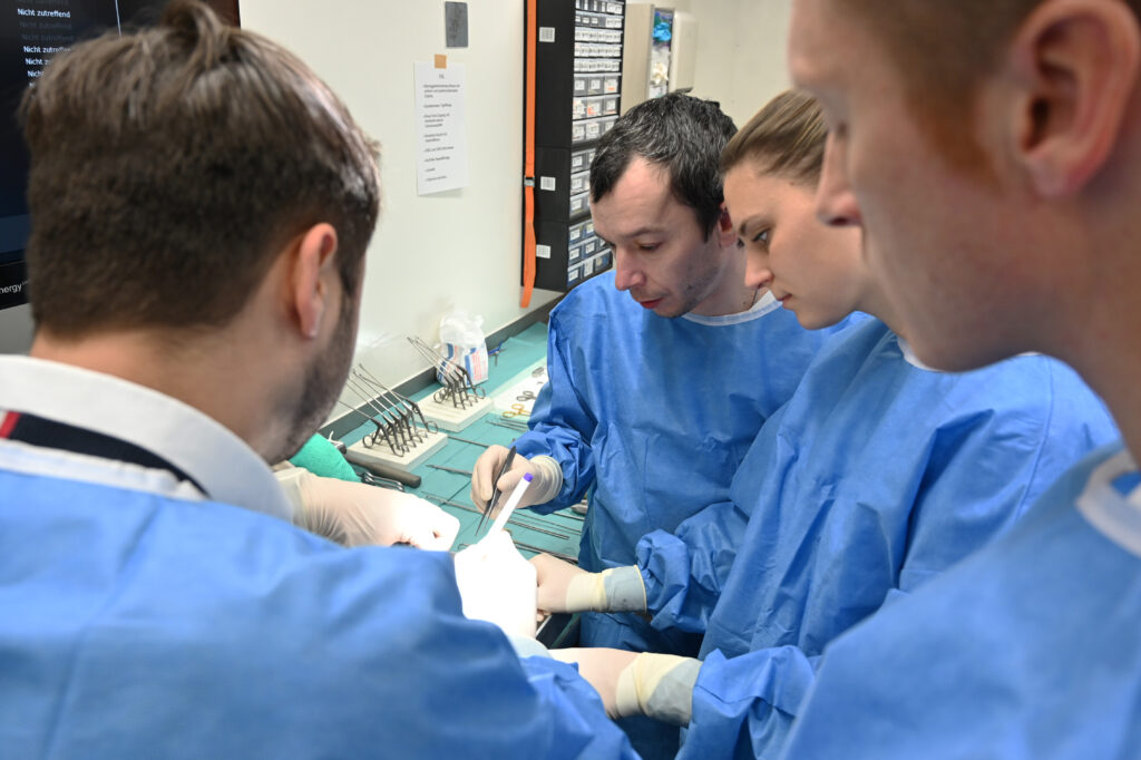 Prof. Dr. Jörn Zwingmann war dankbar – über das Labor an sich, das aufgrund seiner Initiative an die Oberschwabenklinik kam, kostenfrei übrigens. Und über die fabelhafte Lehrmöglichkeit und die Lehrstunden für sein Team. „Für unsere jungen angehenden Spezialisten, die orthopädische und traumatologische Sportverletzungen im Knie-, Schulter- und Fuß- und Sprunggelenkbereich behandeln und gerade die ärztliche Aus- und Weiterbildung absolvieren, ist ein solches Lernlabor der ideale Ort, um ihre Fähigkeiten zu schulen, zu perfektionieren und die ärztliche Expertise weiter auszubauen“, erklärt der Chefarzt. Und weiter: „Durch die kollegiale Unterstützung auf Augenhöhe durch die Oberärzte, die ihre jahrelange Erfahrung als Gelenkexperten teilen, haben wir hier eine besonders effektive Lernatmosphäre.