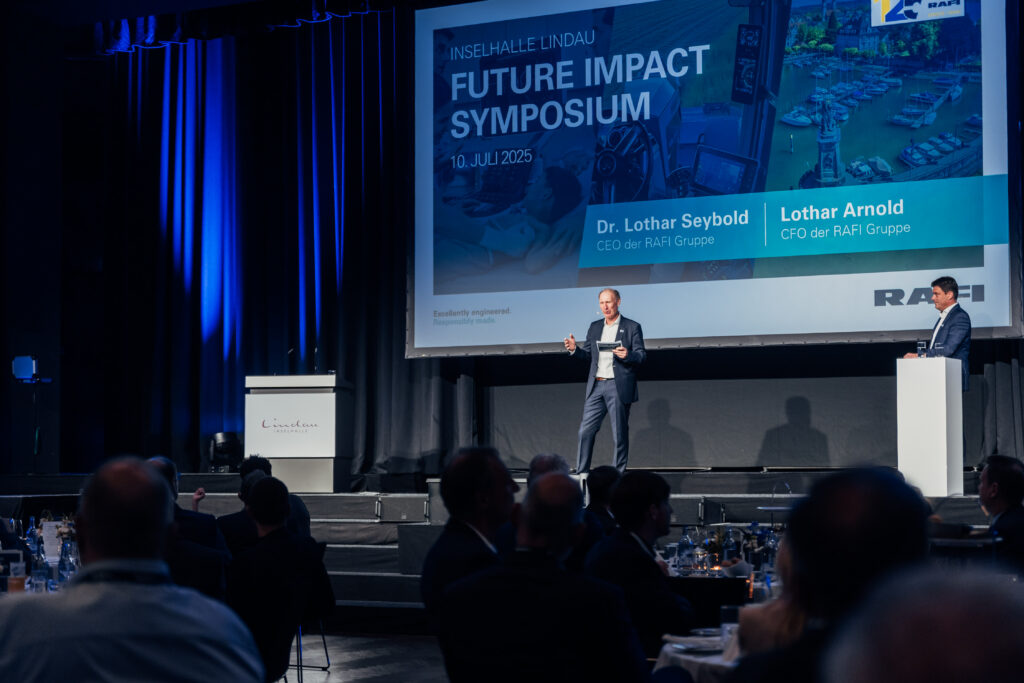 Heute sind wir in vielen verschiedenen Branchen unterwegs, das macht uns einzigartig. Wir arbeiten kontinuierlich an Innovationen, begleiten unsere Kunden am Puls der Zeit und darüber hinaus. Heute an morgen denken ist Teil unserer DNA. Das gelingt vor allem dadurch, dass man uns Vertrauen schenkt und unsere Erfahrungen zu schätzen weiß, auch deshalb, weil wir den Markt immer wieder mit neuen Dingen überraschen“, so Dr. Lothar Seybold, CEO der RAFI Gruppe, in seiner Begrüßungsrede am ersten Tag des Future Impact Symposiums. „Unsere Mitarbeiterinnen und Mitarbeiter an Standorten in Berg, Bad Waldsee, Überlingen, Shanghai, Milwaukee, Zielona Góra, Mezötúr und Cambiago sowie unsere Vertretungen in Frankreich und Skandinavien kennen den Anspruch an Qualität und Technologiekraft, an Pragmatismus und Mut und tragen allesamt zum Gelingen bei.“