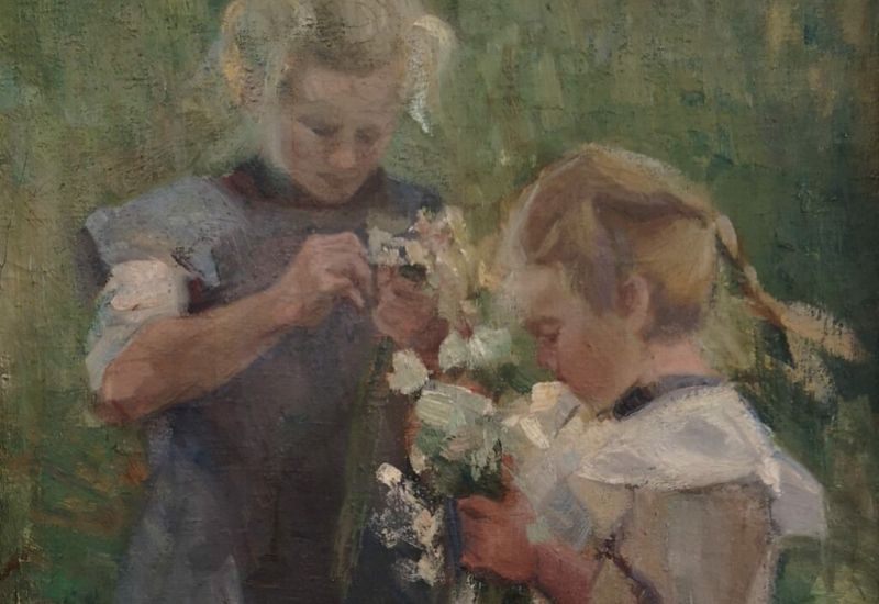 Was die Bildmotive angeht , so finden sich in der Ausstellung natürlich recht viele Blumenstillleben und Kinderporträts. Beide Gattungen galten als typisch weiblich. Aber gleichzeitig entdeckt man gerade bei diesen Themen auch eine überraschende Nähe zu bedeutenden Malern des deutschen Impressionismus. Die gut beobachteten Kinderszenen von Emma Joos, Anna Eichler-Sellin oder Paula von Waechter erinnern an ähnliche Motive bei Max Liebermann. Waechters „Kindergarten in Gablenberg“ etwa lässt einen an die Kinderszenen des Berliner Malers denken, die er in Holland schuf. Und bei Helene Wagners in noblen, fein abgestuften Weiß- und Grautönen gehaltenen Familienszenen denkt man an ähnliche Motive bei Fritz von Uhde, einem weiteren bedeutenden Vertreter des deutschen Impressionismus.