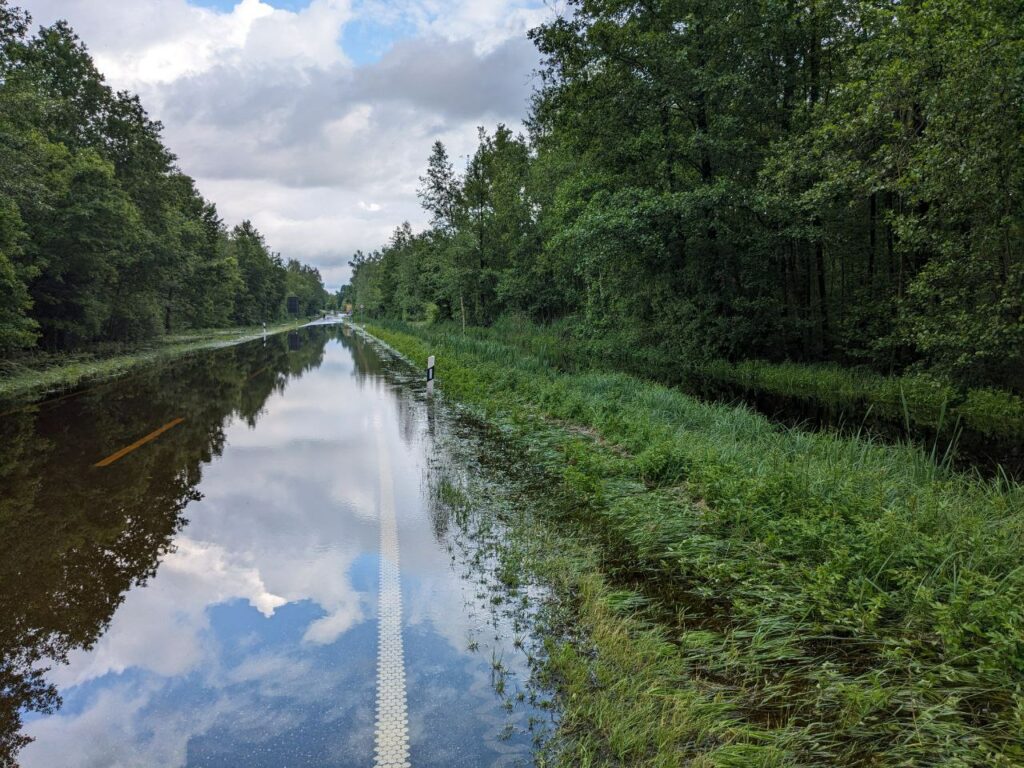 Überschwemmte B465 im Wurzacher Ried (2. Juni, 19.00). Foto: Lukas Häfele