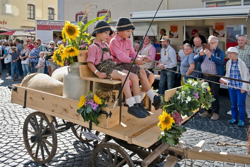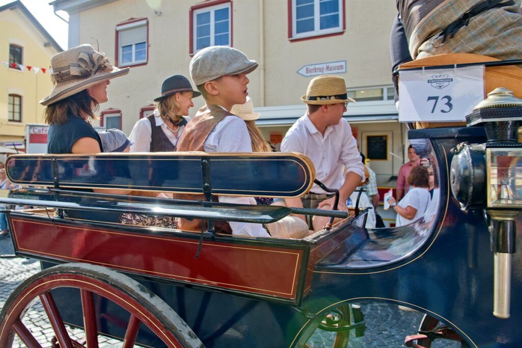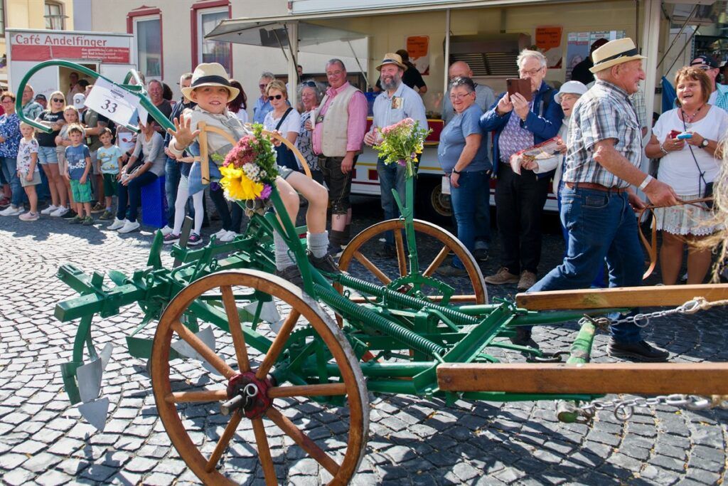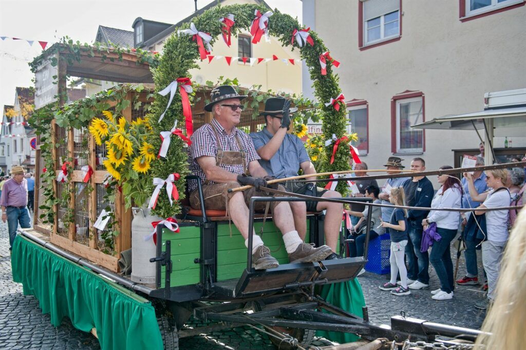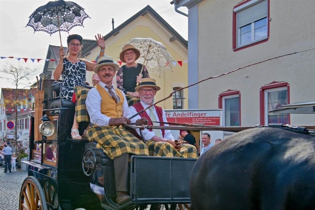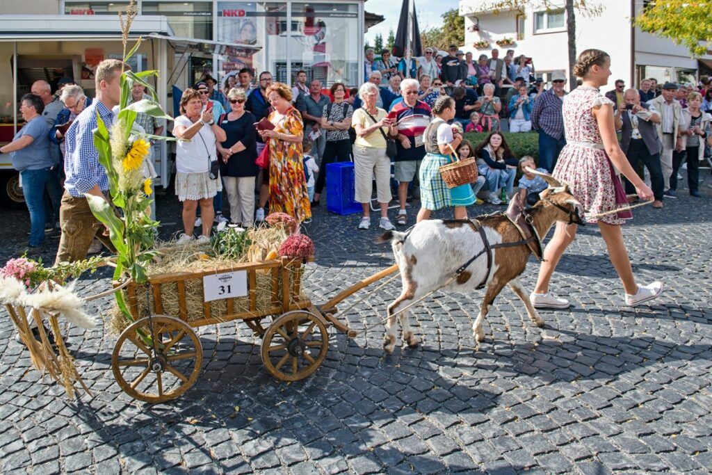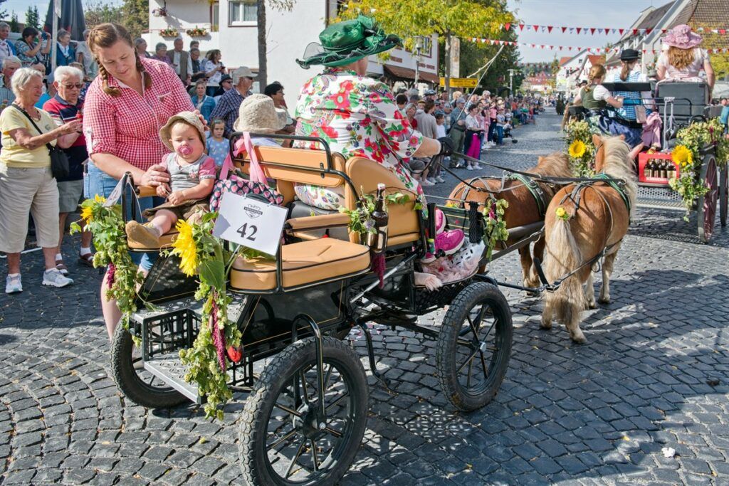 Historische Gespanne zeigten, wie Pferde und Ochsen im Einsatz waren in der Landwirtschaft. Heute Brauchtum, noch vor 50 Jahren alltägliche Arbeit. Man sah Wagen, mit Musikern geladen, die elegante Kutsche, den Hochzeitslader-Wagen, den Langholzwagen, die Jagdgesellschaft zu Pferde und die gelbe Postkutsche. Der imposante achtspännige Festwagen mit den Schussenrieder Bierfässern bildete den Schluss des Festumzuges