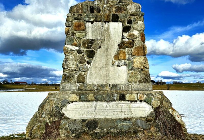 Kißlegg – Unsere fotografierende Leserin Eva Zitzl hat bei einer Tour rund um Kisslegg am 7. Februar bei Fischreute das Zeppelindenkmal entdeckt. Es trägt folgende Inschrift, welche in einen Zeppelinumriss geschrieben ist: Hier landete am 17. Jan. 1906 in Sturm und Not der Bezwinger der Lüfte Graf ZEPPELIN.