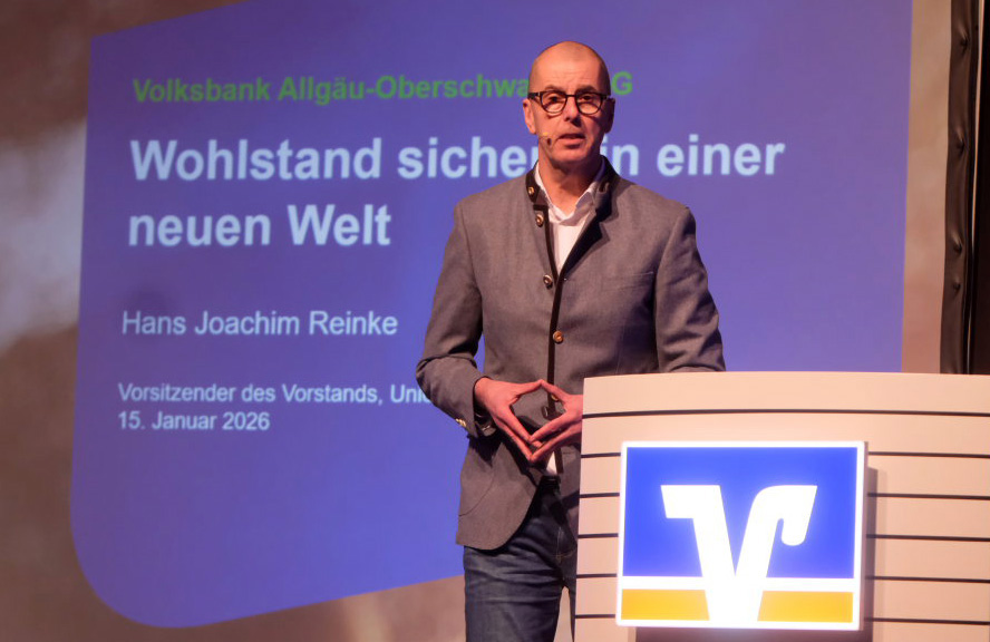 Bad Wurzach – Die Volksbank Allgäu-Oberschwaben (VBAO) präsentierte bei ihrem ersten Mitgliederforum des Jahres 2026 (15.1.) im Saal des „Torfstechers“ in Bad Wurzach mit Hans Joachim „Aki“ Reinke und Markus Gürne gleich zwei Top-Referenten zum Thema Investment in einer zunehmend unsicheren Welt.